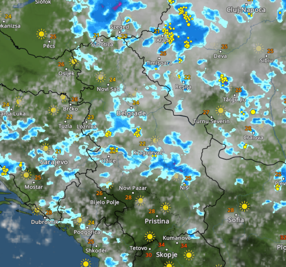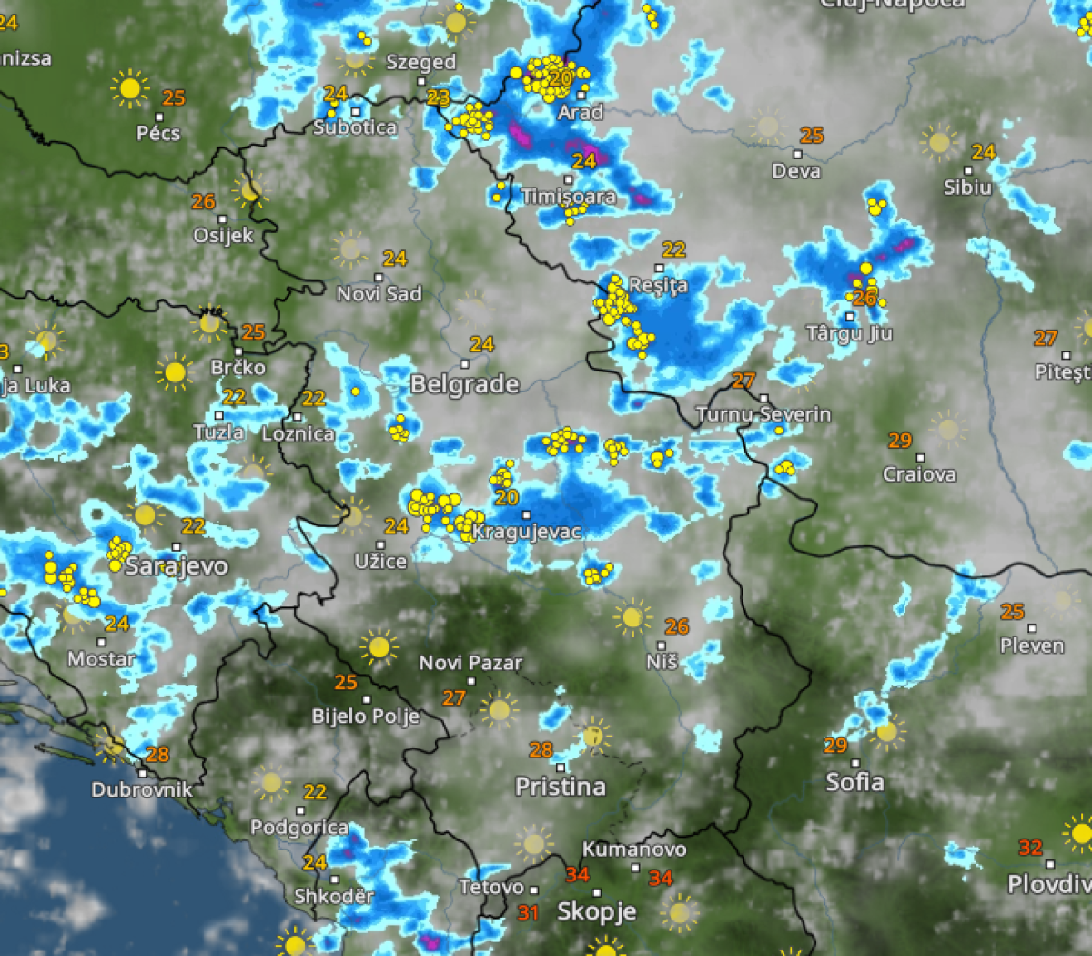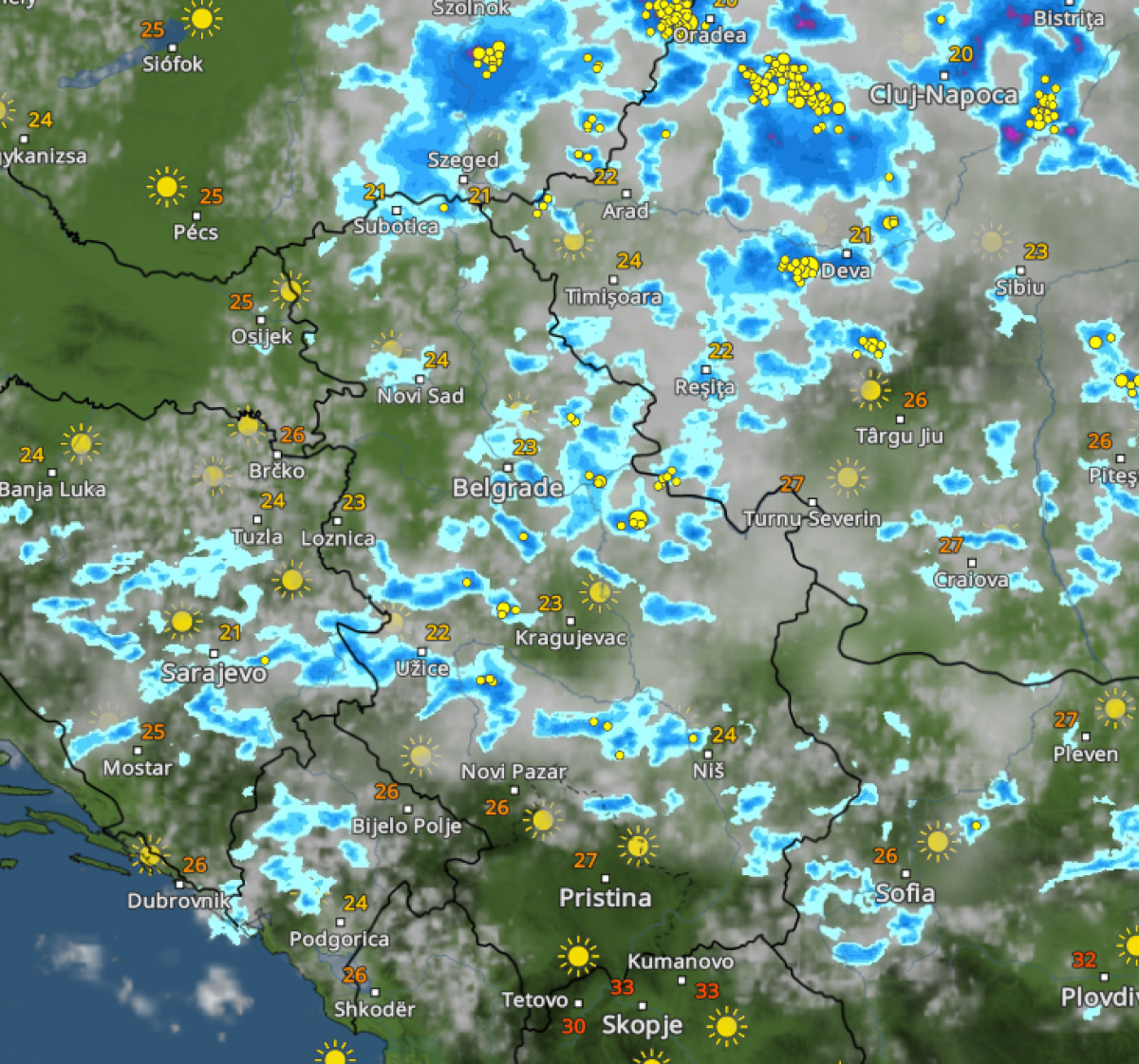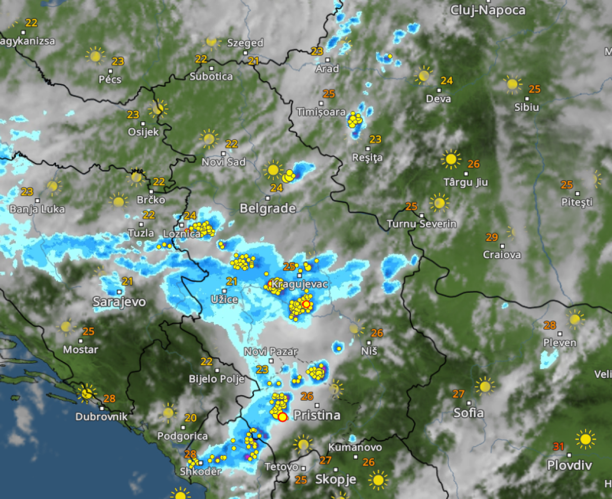 - Plјuskovi i grmlјavine koji se na području Srbije očekuju danas lokalno će biti praćeni gradom i jakim ili olujnim vetrom. Najveća verovatnoća pojave grada je u oblasti od zapadne i jugozapadne Srbije preko Šumadije i Pomoravlјa dalјe na istok zemlјe, dok će uslova za kratkotrajno jak ili olujni vetar biti i severnije i južnije od ove oblasti. Za konkretne lokacije izdavaće se hitna upozorenja jedan do dva časa unapred - navodi se u upozorenju RHMZ.