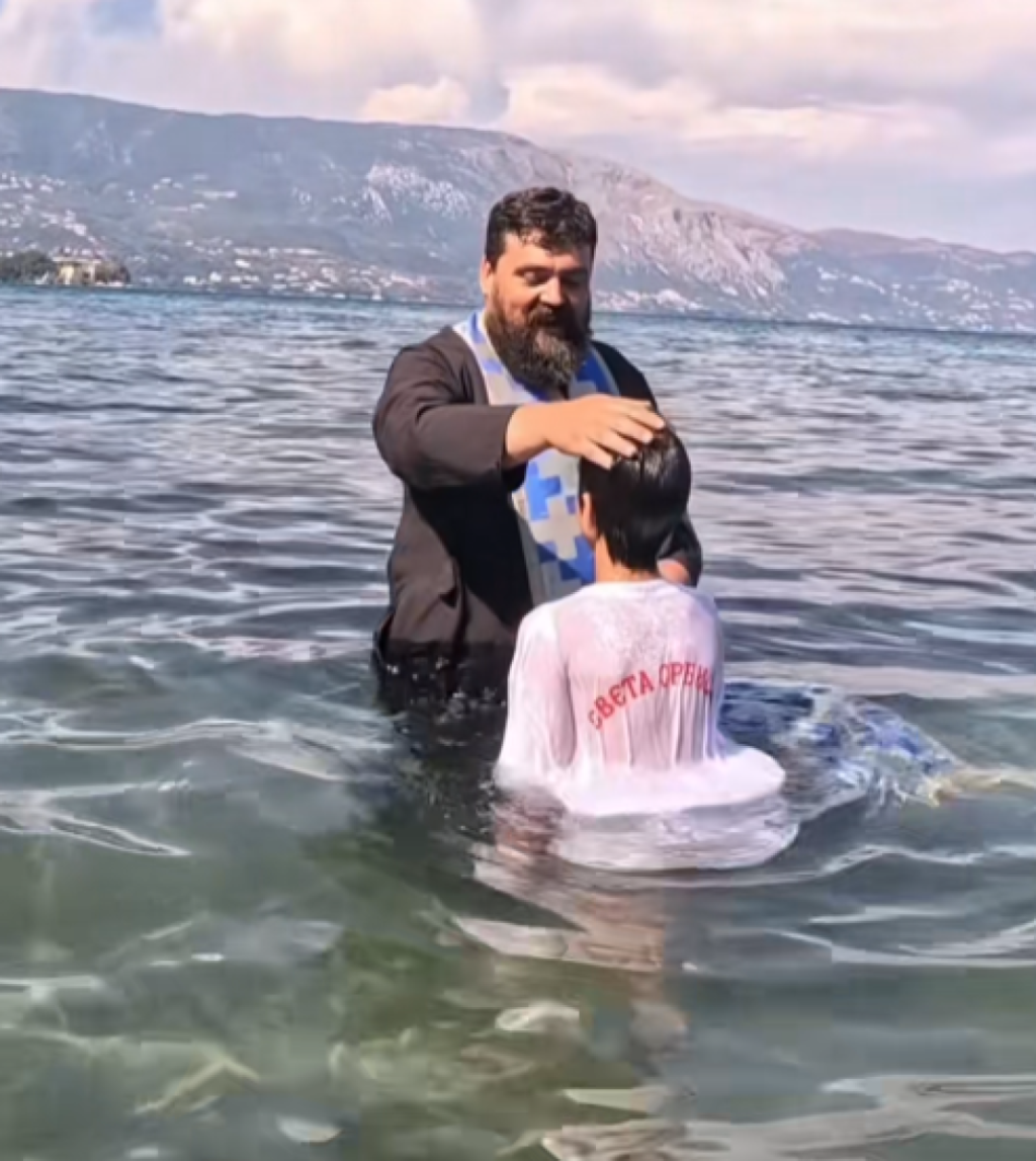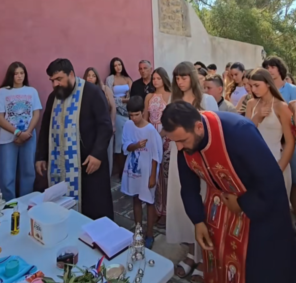 Neplanirani trenutak u večnosti. U kampu @svetasrbija na Krfu, u kojem se nalazi preko 90 ljudi, saznali smo da dva učesnika nisu krštena, Milutin (9) i Vera (17). Posle predavanja Post i ispovest, koje se održalo prvih dana kampa, oni poželeše da se krste. Poželeli su da budu deo crkvene zajednice. Poželeli su da budu učesnici u Svetim Tajnama Crkve. Dobrovoljno, skromno i iskreno. Zaista dečije iskreno. Roditelji su dali saglasnost i spontano se pripremao trenutak njihovog krštenja. Sa Milutinom i Verom se razgovaralo o veri. Oci Vlada i Steva su im, u porti crkve Svetog Nikole, na plaži Svetog Nikole, uputili reči ljubavi, otvorivši im svoja srca. Inače, porta crkve je bila zaključana 14 godina, koliko na tu plažu dolaze učesnici kampa, a tog dana, na Preobraženje, vrata su se otvorila i zvona su zazvonila, od strane crkvenjaka. Imali smo blagoslov da krštenje bude obavljeno u porti. Crkva nije otvarana. Čudo. Na dva metra od crkve nalazi se slana voda. Nikada ranije nisam prisustvovao krštenju u otvorenoj vodi. Utisak je neverovatan. Krf, more i plaža gde su naši preci boravili posle prelaska preko Albanije 1916. godine. Tada je na Krfu boravilo 150.000 srpskih vojnika, a sada nam se zahvaljuju svaki put kada dođemo rečima: „Hvala vam što ste došli, nismo zaboravljeni!“ Toga dana slane suze su se sjedinile sa slanim Jonskim morem. Živela Sveta Srbija!