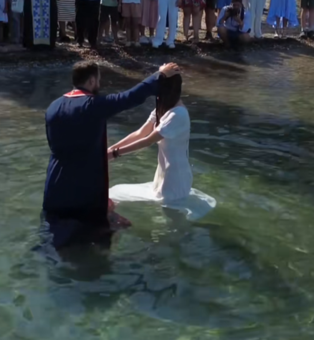 Milutin (9) i Vera (17) tokom boravka u kampu na Krfu poželeli su da budu deo crkvene zajednice, te su imali priliku da se krste upravo u moru i crkvi koja pre toga nije bila otvorena 14 godina.