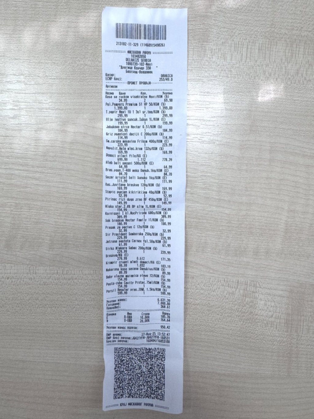 Kada smo završili kupovinu koja je trajalaoko 45 minuta, ukupan ceh bio je 6.631,39 dinara. Sada čekamo 1. septembar da vidimo da li ekonomske mere uroditi plodom.