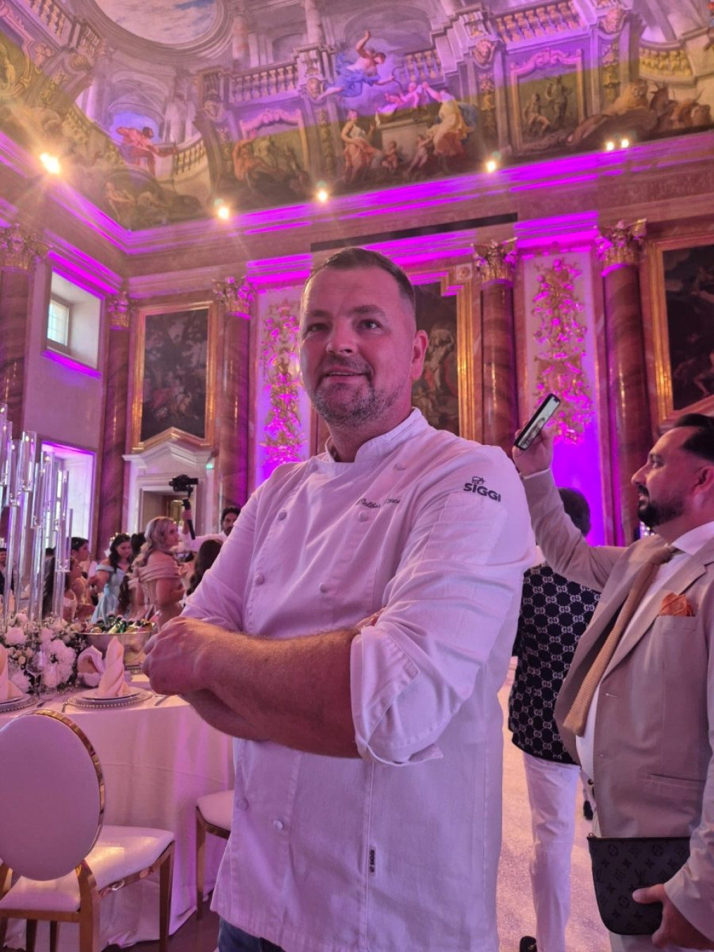 - Bazirao sam meni na našoj tradicionalnoj osnovi sa miksom Francuske kuhinje. Bilo je svega. Predjela, toplih, hladnih, glavnih jela, priloga, specijaliteta, kolača, voća, kanapea... Viđenog i neviđenog. Gosti su bili odušvljeni, a pre svega mladenci. Zaista atmosfera ne može da se dočara. Uspeli smo da dovedemo i velike zvezde pa su na svadbi pevali - Slađa Alegro, Jana, Đani, Borko Radivojević i mnogi drugi.
