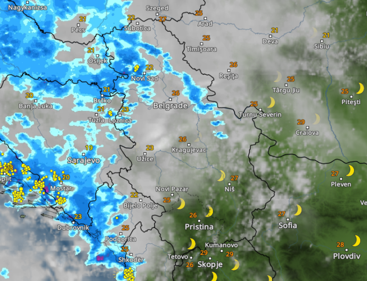 U sredu se očekuje povećanje oblačnosti i to će biti uvod u promenu vremena. Već uveče i tokom noći u zapadnim i severozapdnim, a u četvrtak i u ostalim predelima očekuje se prolazno naoblačenje sa kišom, pljuskovima i grmljavinom, a ponegde se očekuju i krakotrajne grmljavinske nepogode.