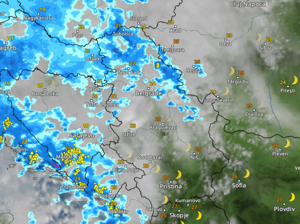 Osim pljuskova sa grmljavinom, u određenim delovima Srbije stvoriće se uslovi i za grad.