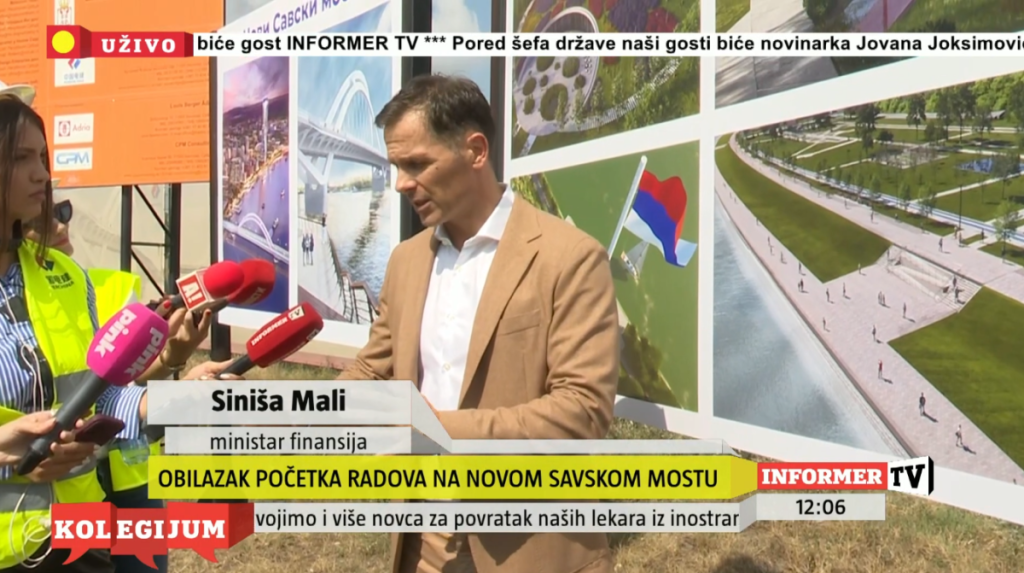 Ministar finansija Siniša Mali prisustvovao je obilasku početka radova na novom Savskom mostu i poručio da se završetak radova očekuje već do kraja sledeće godine.