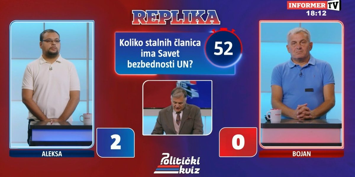 Podsećamo, u prvoj epizodi "Političkog kviza" rezultat je bio 93 prema 86 u korist Bojana. Prvi okršaj Alekse Kondića i Bojana Pijevca, možete pogledati OVDE.