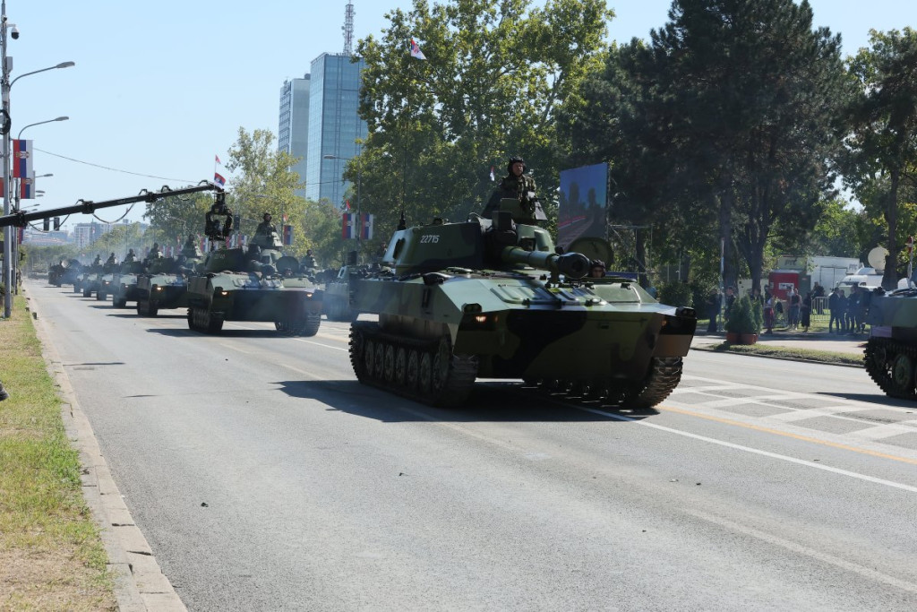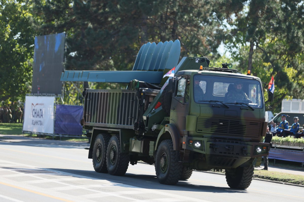 Javnosti je prvi put prikazan i ruski sistem za elektronsko ratovanje "Krasuha", nakon čega su defilovale tenkovske jedinice, sa modenirnizovanim tenkovima M-84.