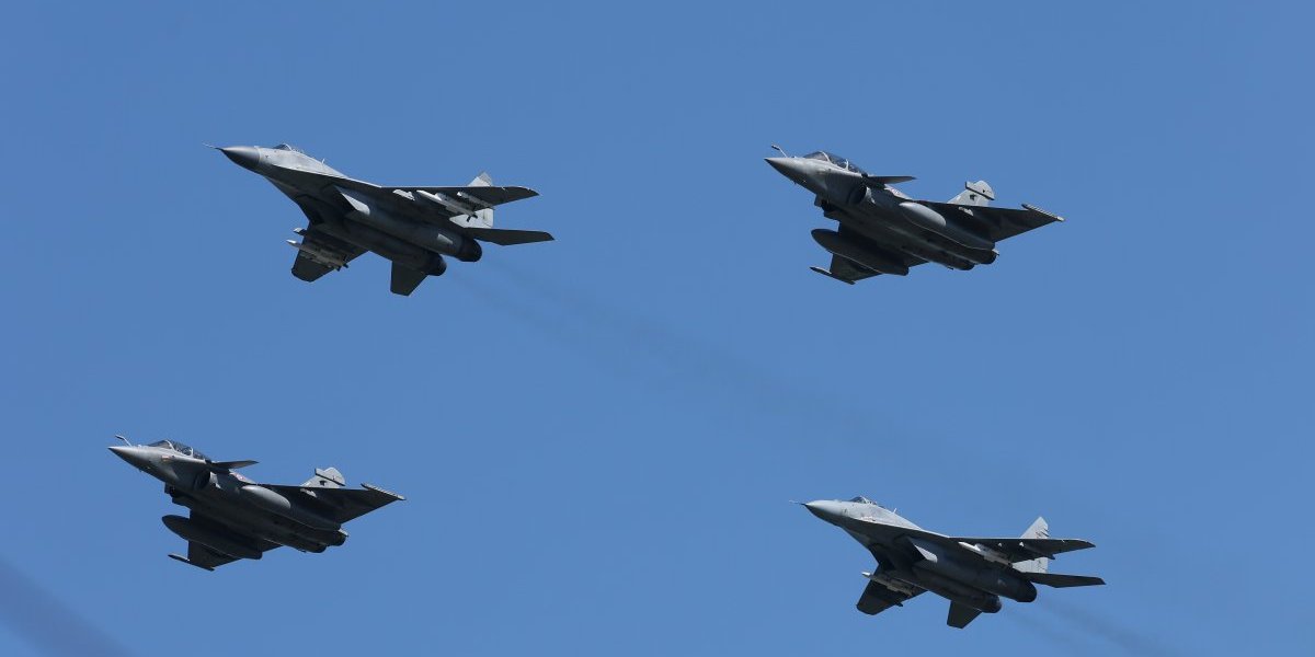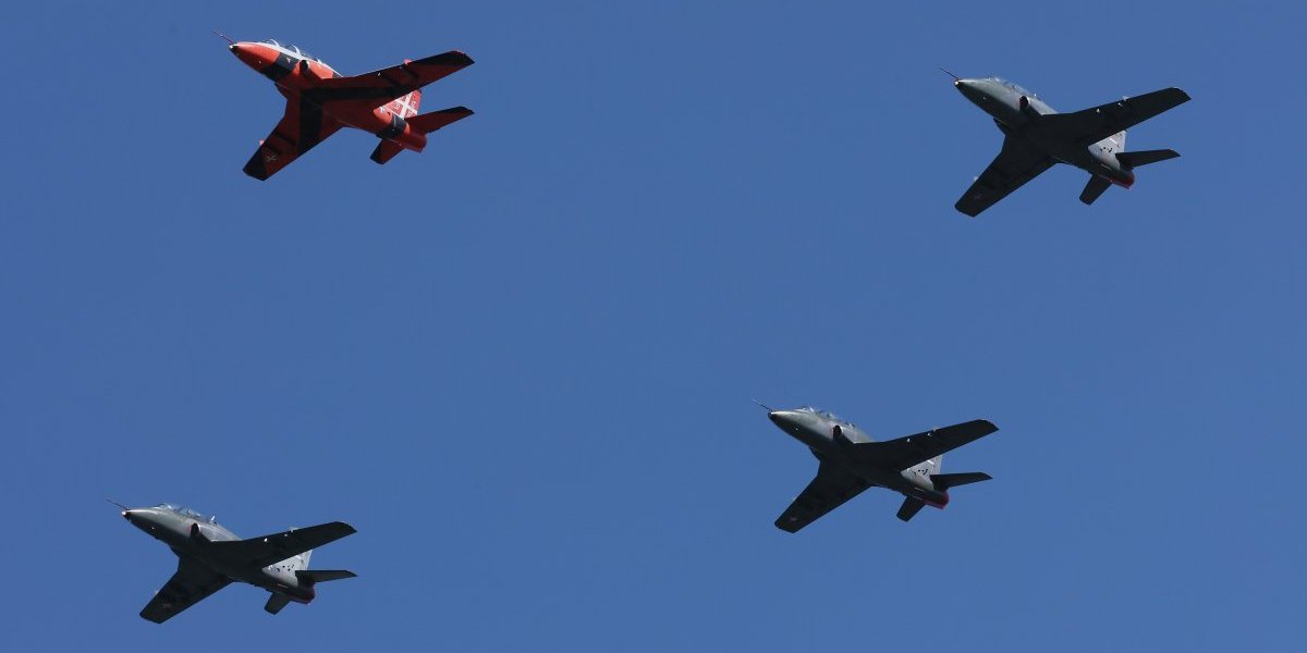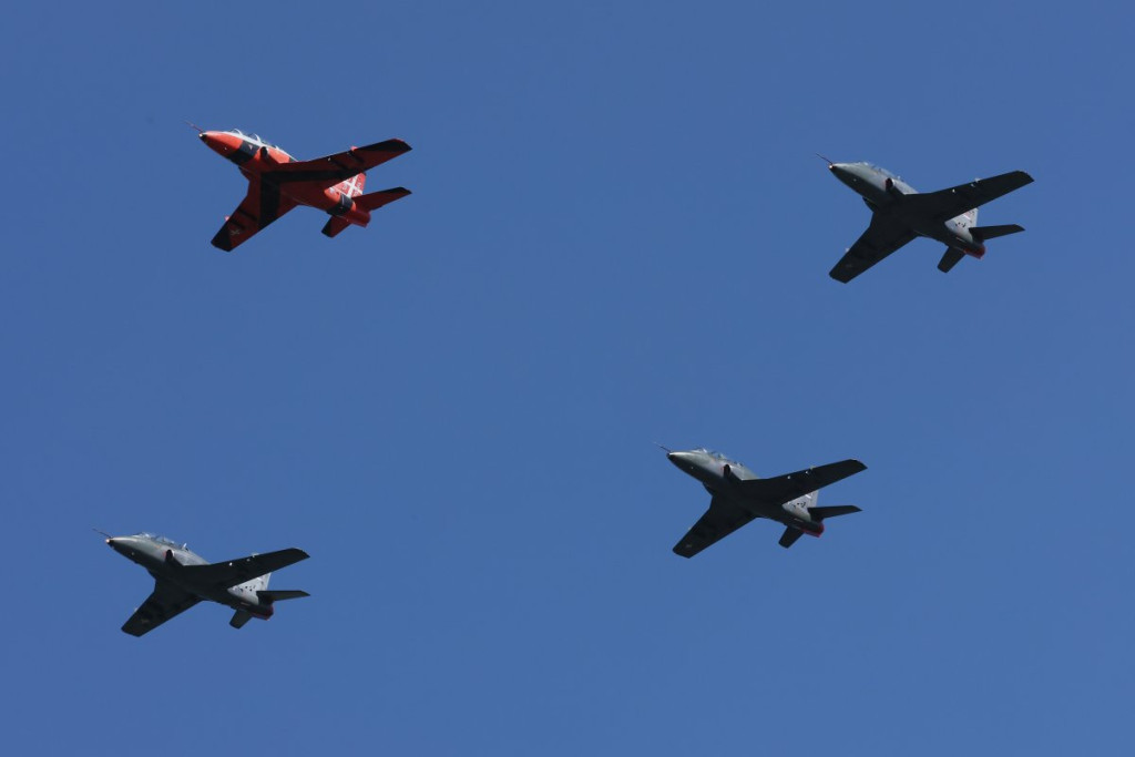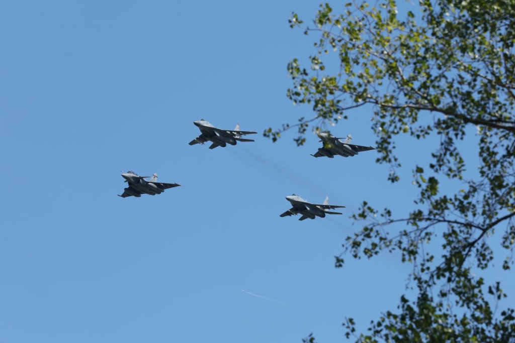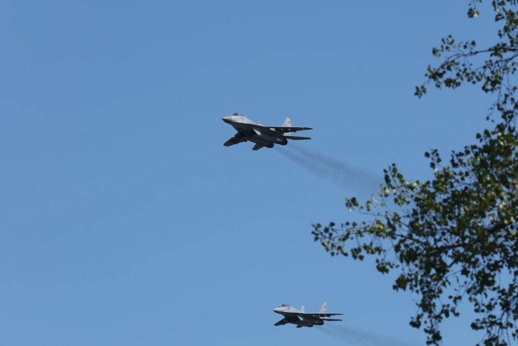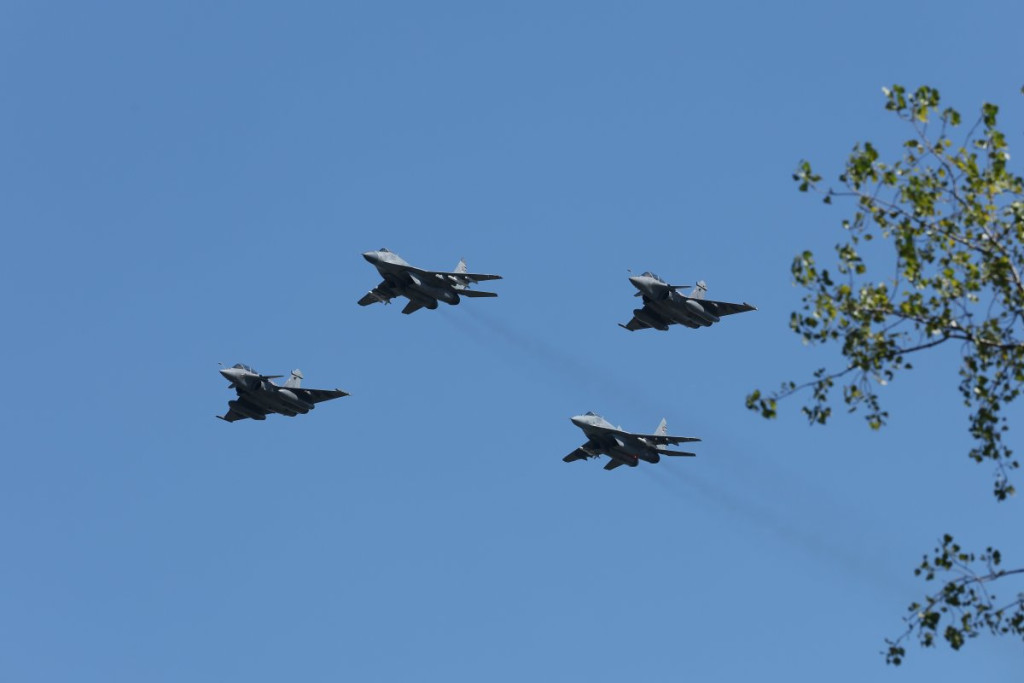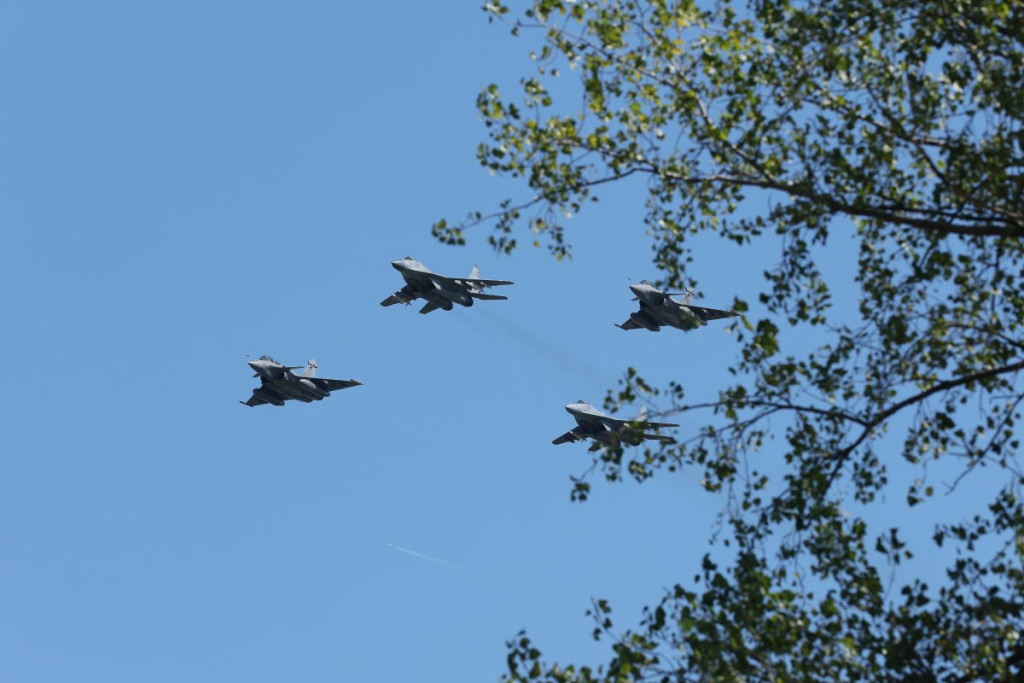 Prikazani su i borbeni avioni MIG-29, praćeni lovcima-bombarderima "orao", koji su modernizovani, a nakon toga je usledio nalet "supergaleba", transportnih aviona, školskih aviona "lasta".