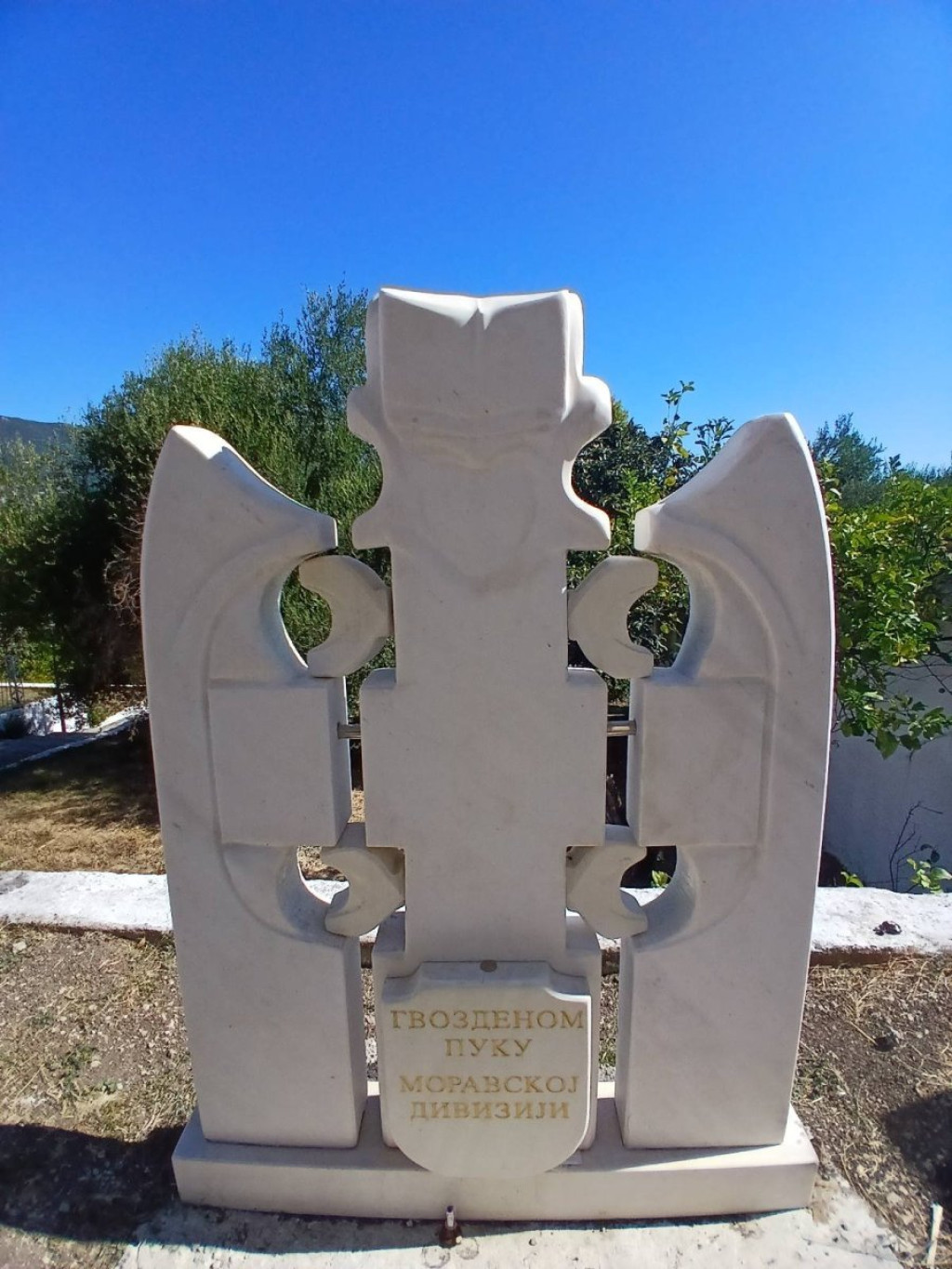 Spomenik je posvećen Drugom pešadijskom puku prvog poziva Moravske divizije "Knjaz Mihajlo", poznatom pod nazivom "Gvozdeni puk", nalazi se u porti crkve u Dasiji, mestu udaljenom oko 12 kilometara severno od grada Krfa.