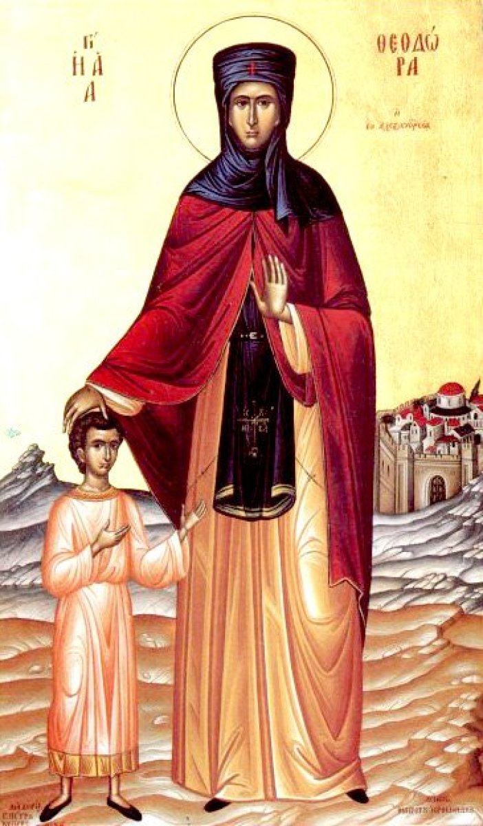 Sveta Teodora imaše preveliku blagodat Božju: zverove ukroćavaše, bolesti isceljavaše, vodu u suhom bunaru izvede. Tako Bog proslavi istinsku pokajnicu, koja sa junačkim trpljenjem 9 godina kajaše samo jedan svoj greh. Upokojila se 490. god.