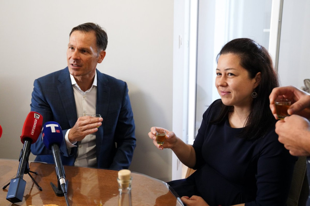 Mali je deci Marine i Saše Vesića doneo poklone i nazdravio sa njima poželevši im puno lepih trenutaka u njihovoj prvoj nekretini.