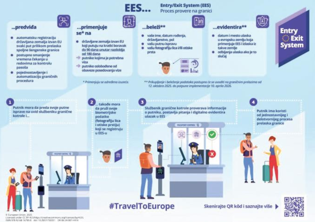 Novi sistem za proveru ulazaka (EES) u EU biće aktiviran 12. oktobra u Hrvatskoj i drugim zemljama Šengena, a svi putnici sa srpskim pasošem moraće da daju otiske prstiju i biometrijske podatke.