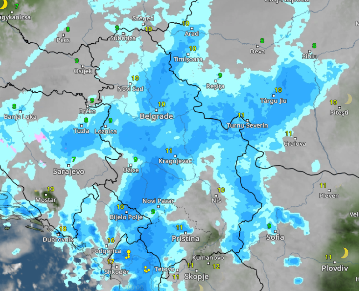 Na zapadu i severu do kraja dana će biti mestimično sa kišom, a na jugu se očekuju i kratkotrajni pljuskovi uz umeren do pojačan severozapadni vetar, stoji u najavi.