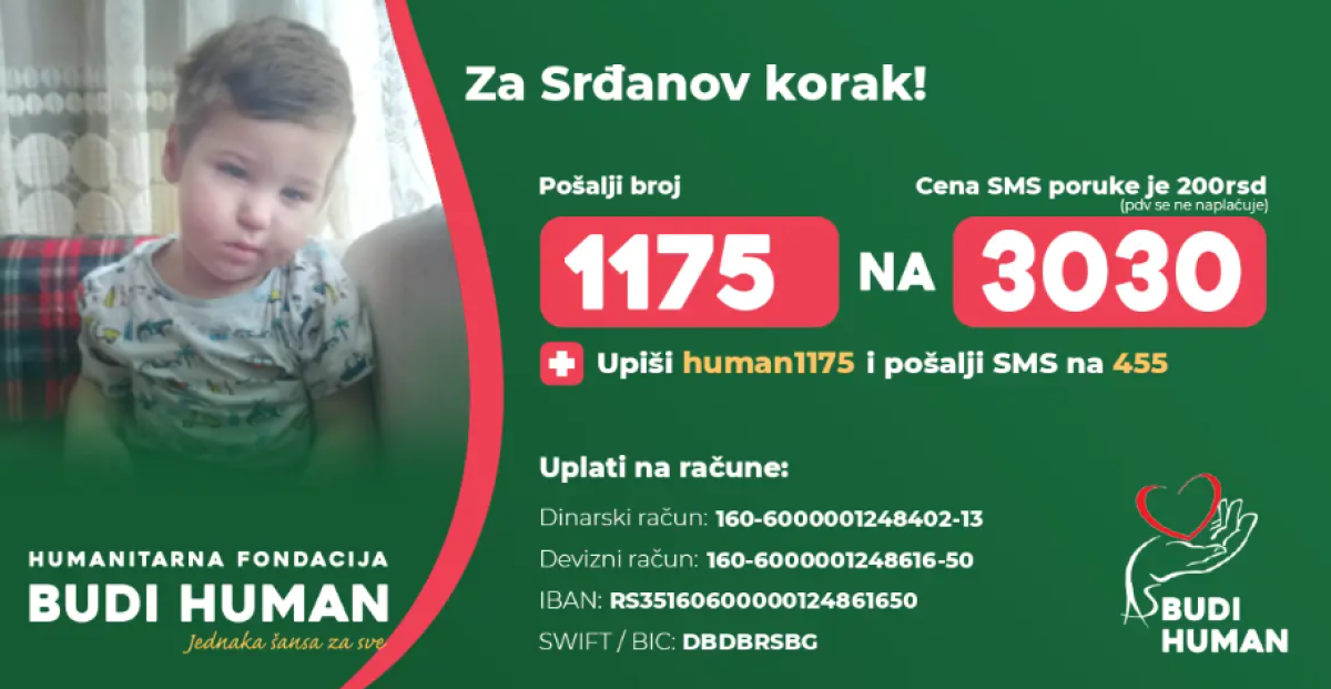 Danas, svaki dan bez terapije i operacije nosi rizik da se njegovo stanje pogorša. Srđanovo detinjstvo je ispunjeno bolnicama, terapijama i dijagnozama, ali njegov osmeh ne nestaje. On je mali heroj koji zaslužuje priliku.