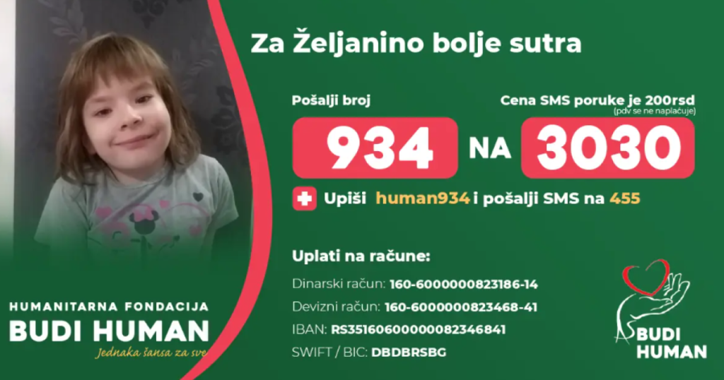 2021. godine uz pomoć humanih ljudi sredstva za Željanino lečenje prikupljena su u vrlo kratkom roku pa je lečenje njene osnovne bolesti započeto u Jordanu gde je sa roditeljima boravila duže od godinu dana.