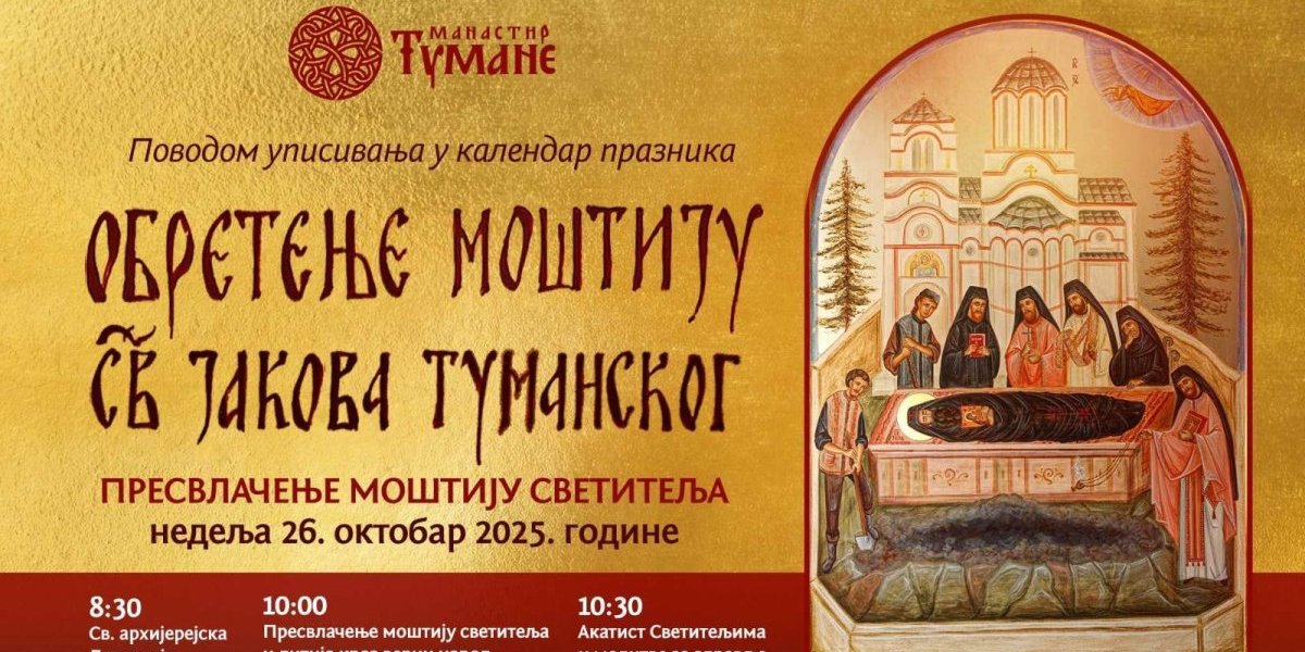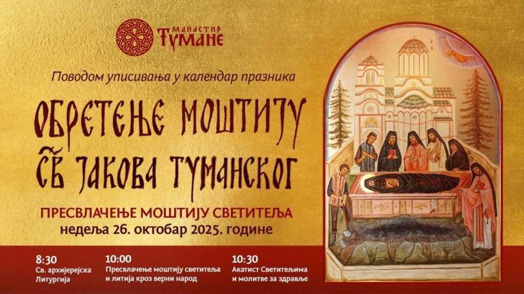 U tu čast u nedelju 26. oktobra biće služena Sveta arhijerejska Liturgija u 08:30 časova u manastiru Tumanu.