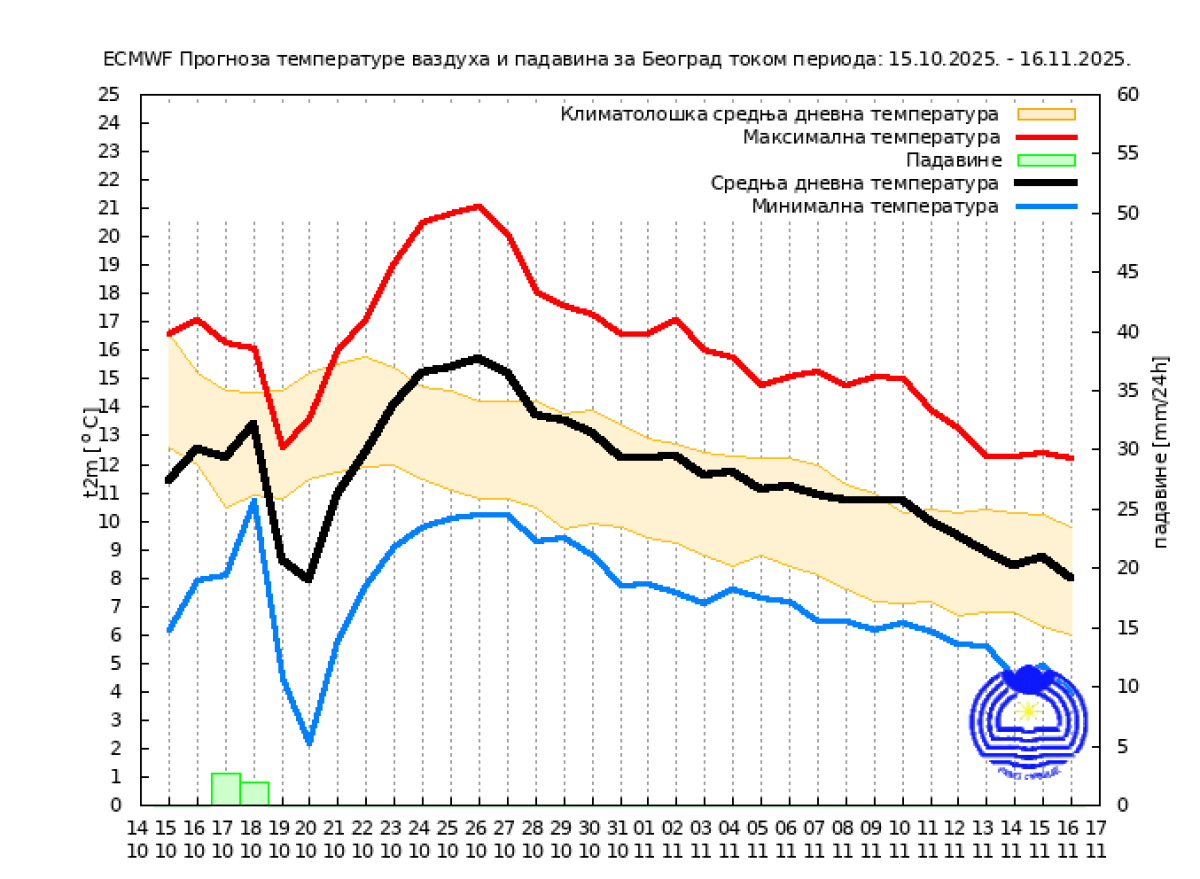 - U slučaju da zahlađenje bude jače u trećoj dekadi oktobra i početkom novembra mogu se očekivati i prvi jutarnji mrazevi u nižim predelima i gradovima.