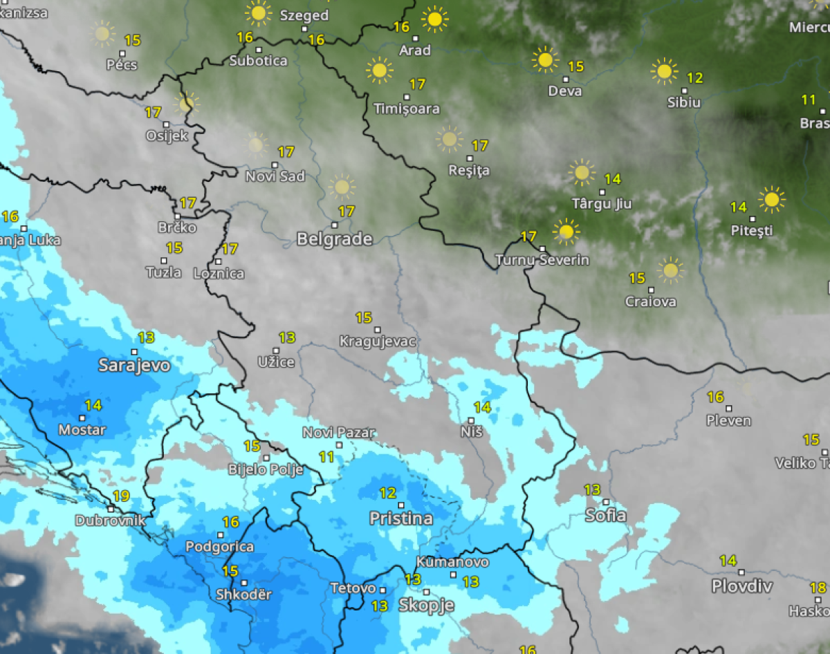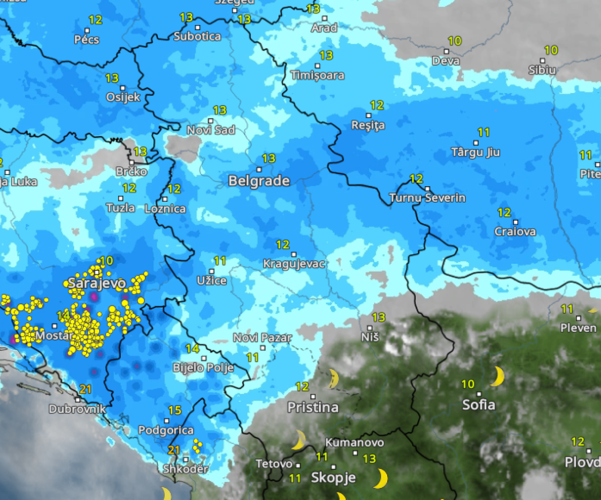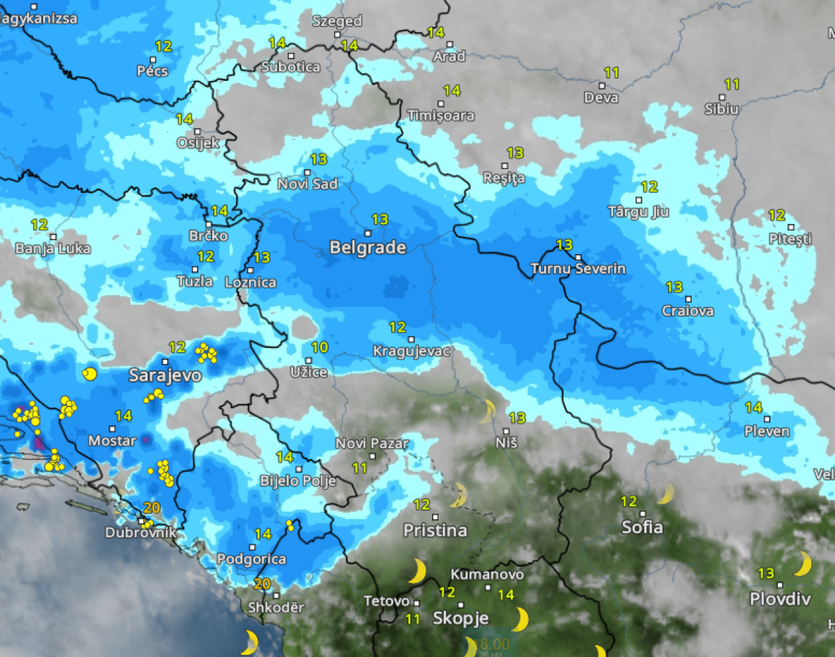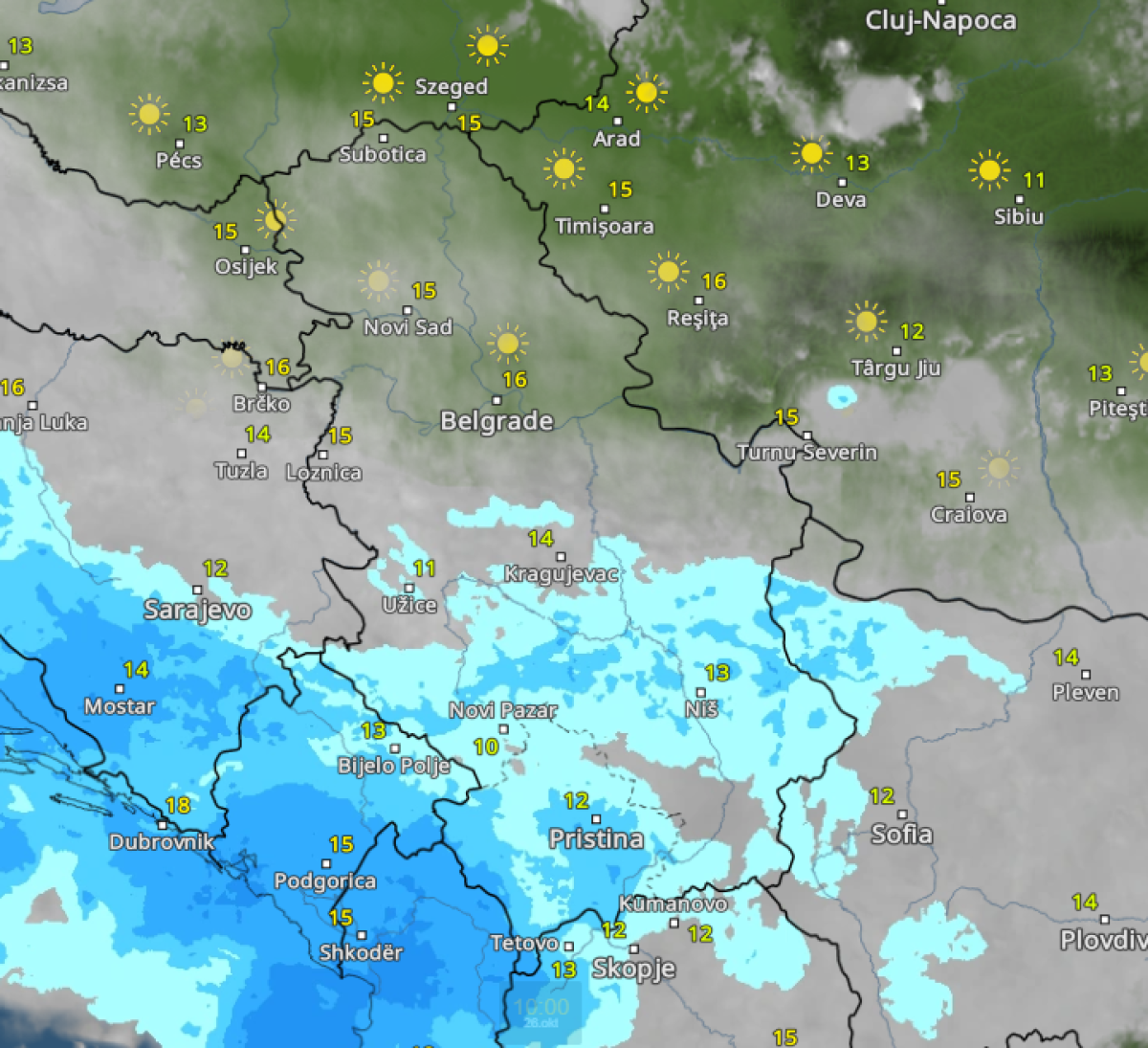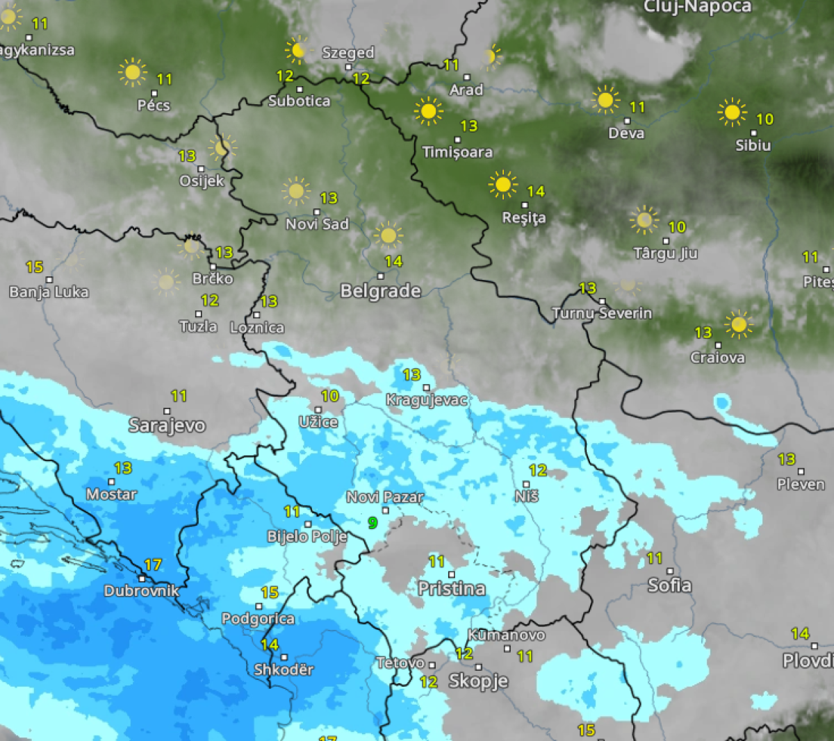 Samo nekoliko sati potom od 13 časova počeće da se širi na sve delove Srbije, i već do 15 časova kiša će da pada na gotovo čitavoj teritoriji naše zemlje.