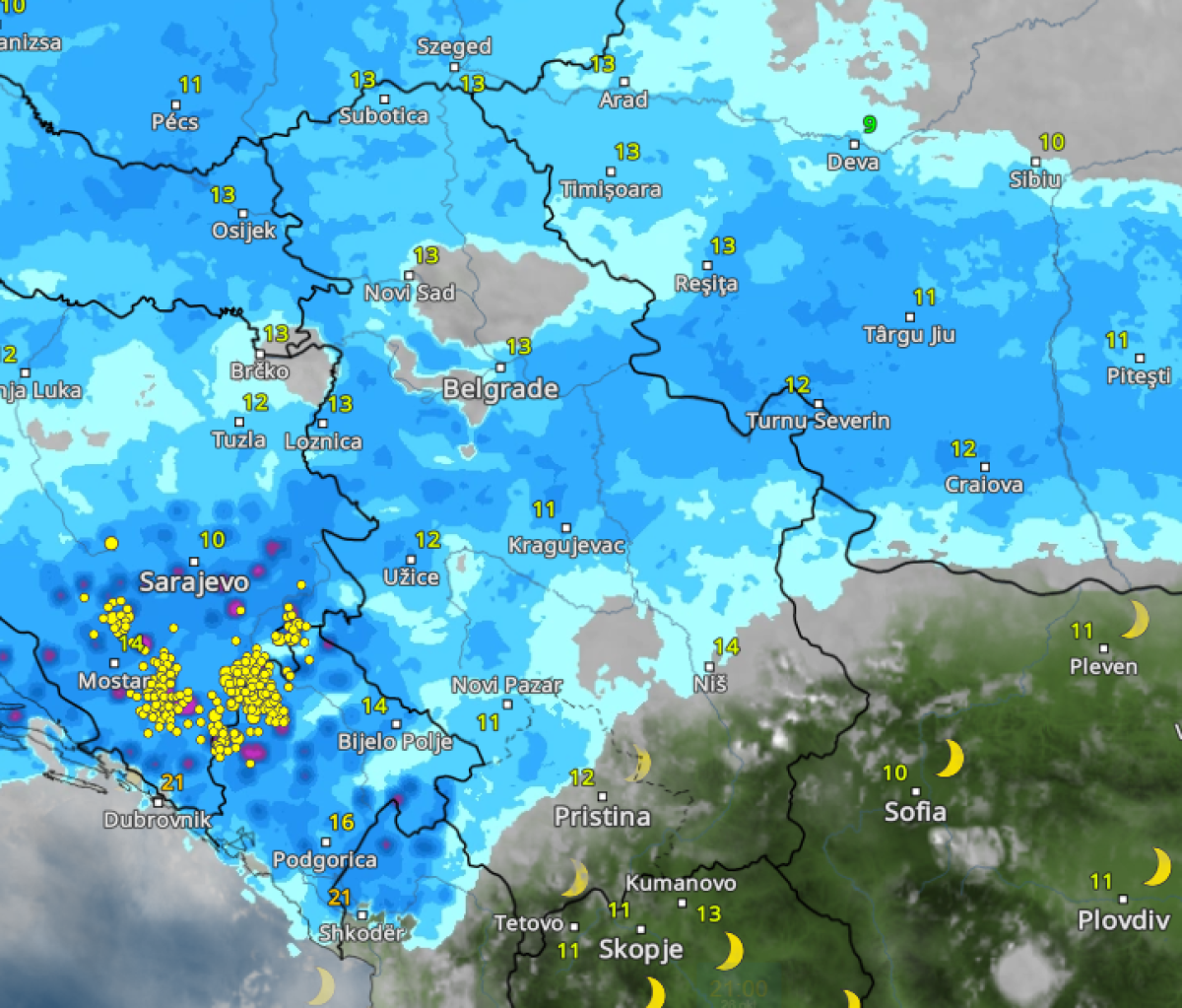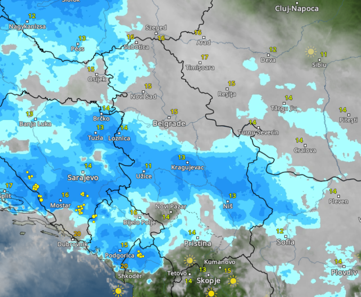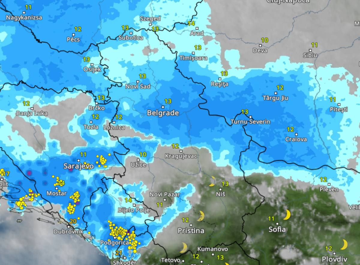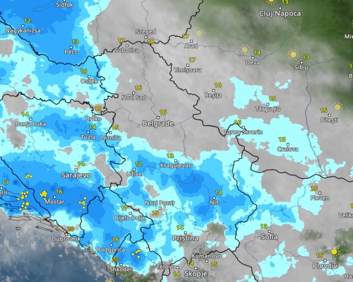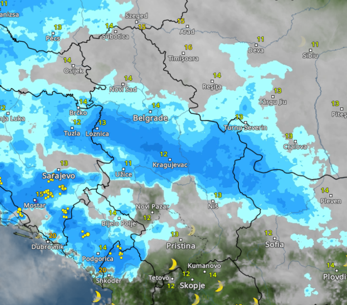 Samo nekoliko sati potom od 13 časova počeće da se širi na sve delove Srbije, i već do 15 časova kiša će da pada na gotovo čitavoj teritoriji naše zemlje.