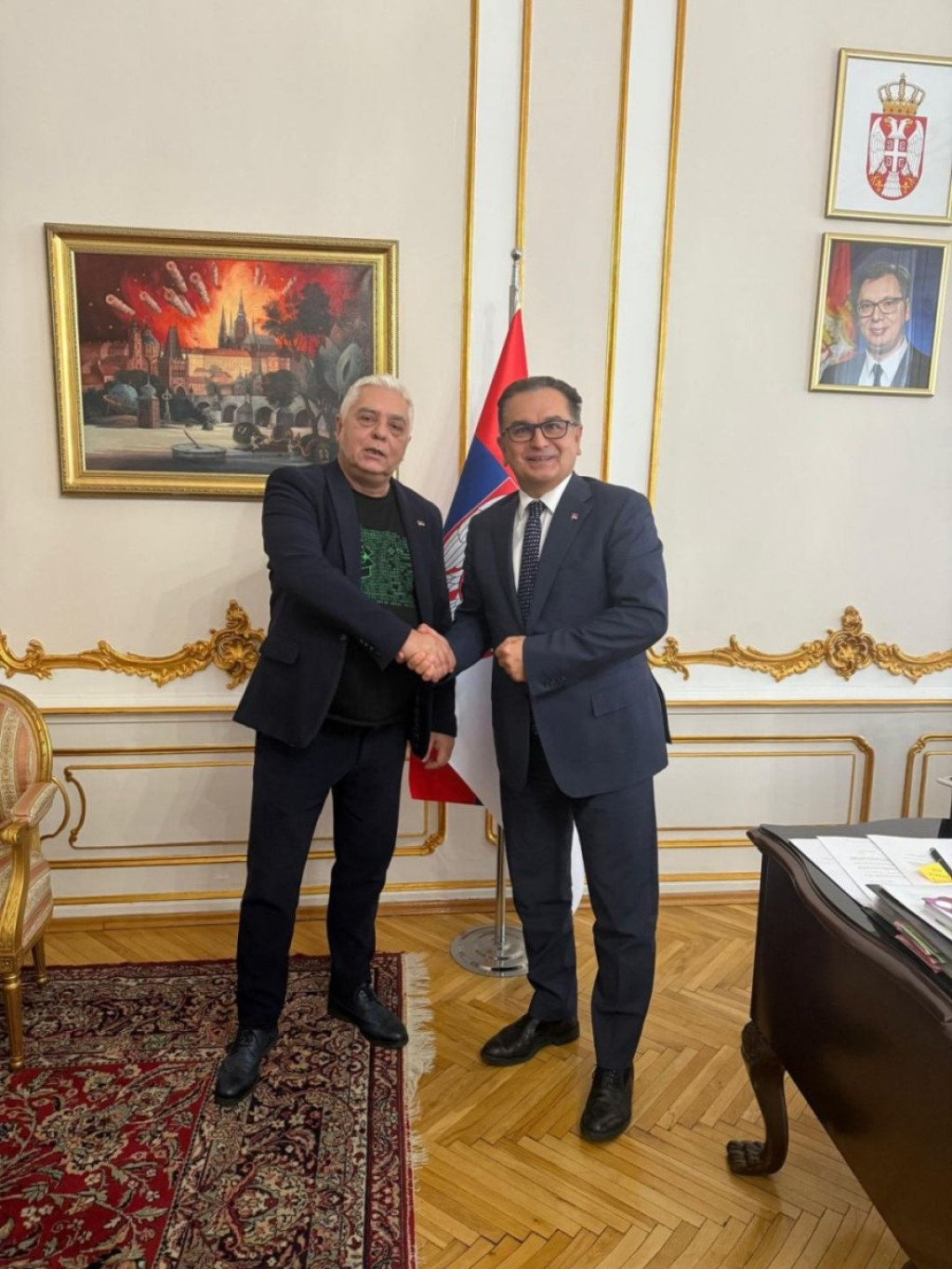 Tokom boravka u Pragu, ministar Bratina se sastao i sa ambasadorom Republike Srbije u Češkoj, dr Berislavom Vekićem, sa kojim je razgovarao o aktivnostima koje doprinose jačanju saradnje između dve zemlje i promociji Srbije u okviru regionalnih i evropskih inicijativa.