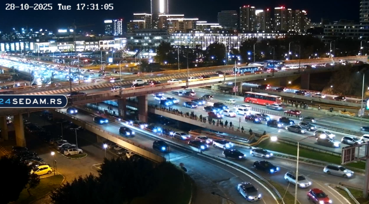 Na Bokeljskoj petlji vozila doslovno stoje u smeru ka kružnom toku na Autokomandi, a kako se može videti na gradskim kamerama u jednom momentu, ljudi se rado odlučuju da prepešače preko pasarela ovaj deo Beograda.