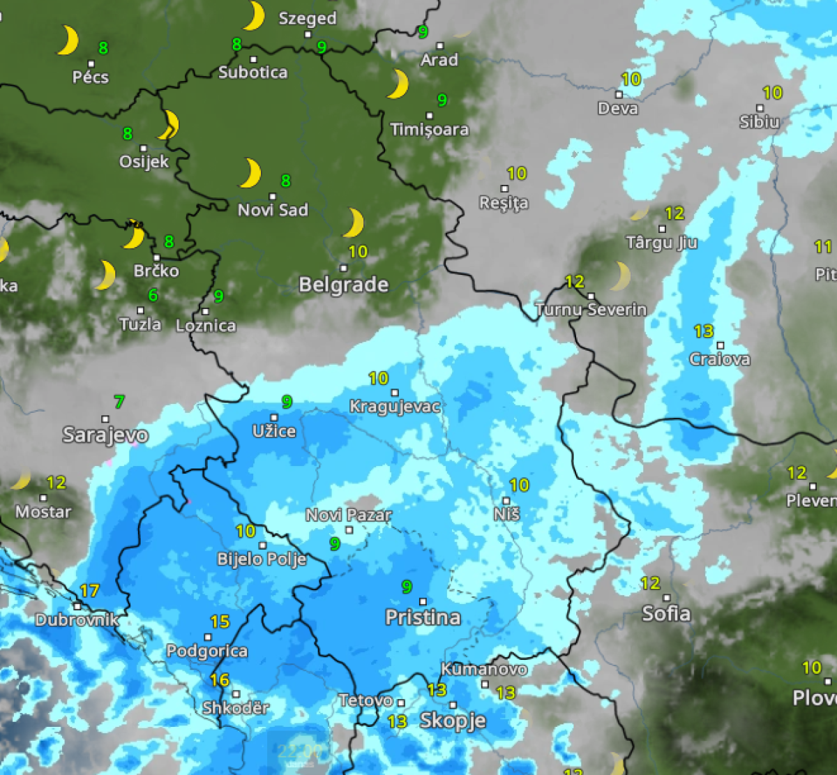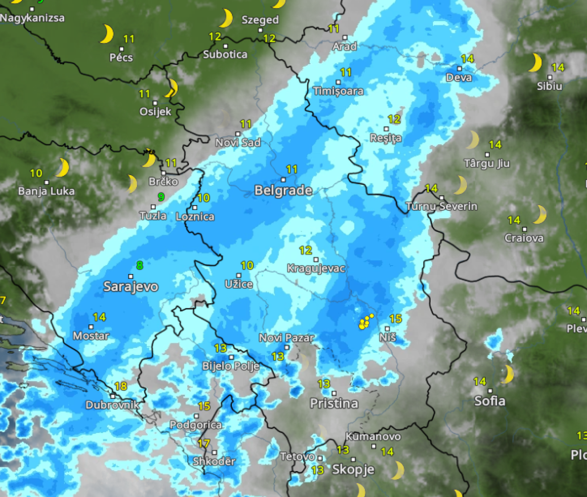 Do kraja dana nastaviće se pad temperature vazduha, a u kasnim popodnevnim časovima pljuskovi sa grmljavinom zahvatiće veći deo naše zemlje.