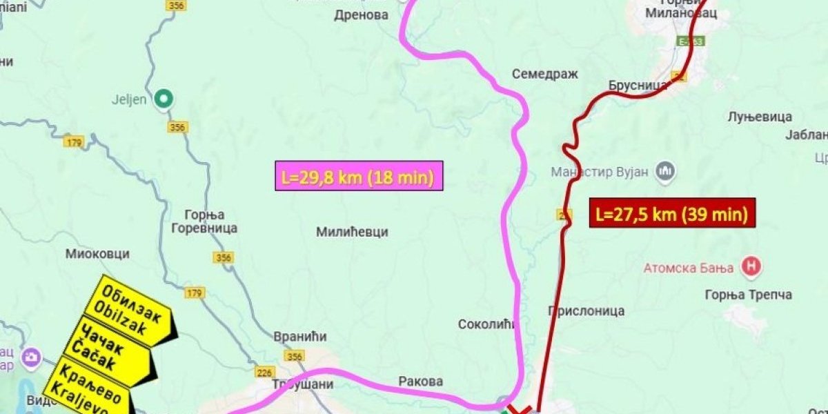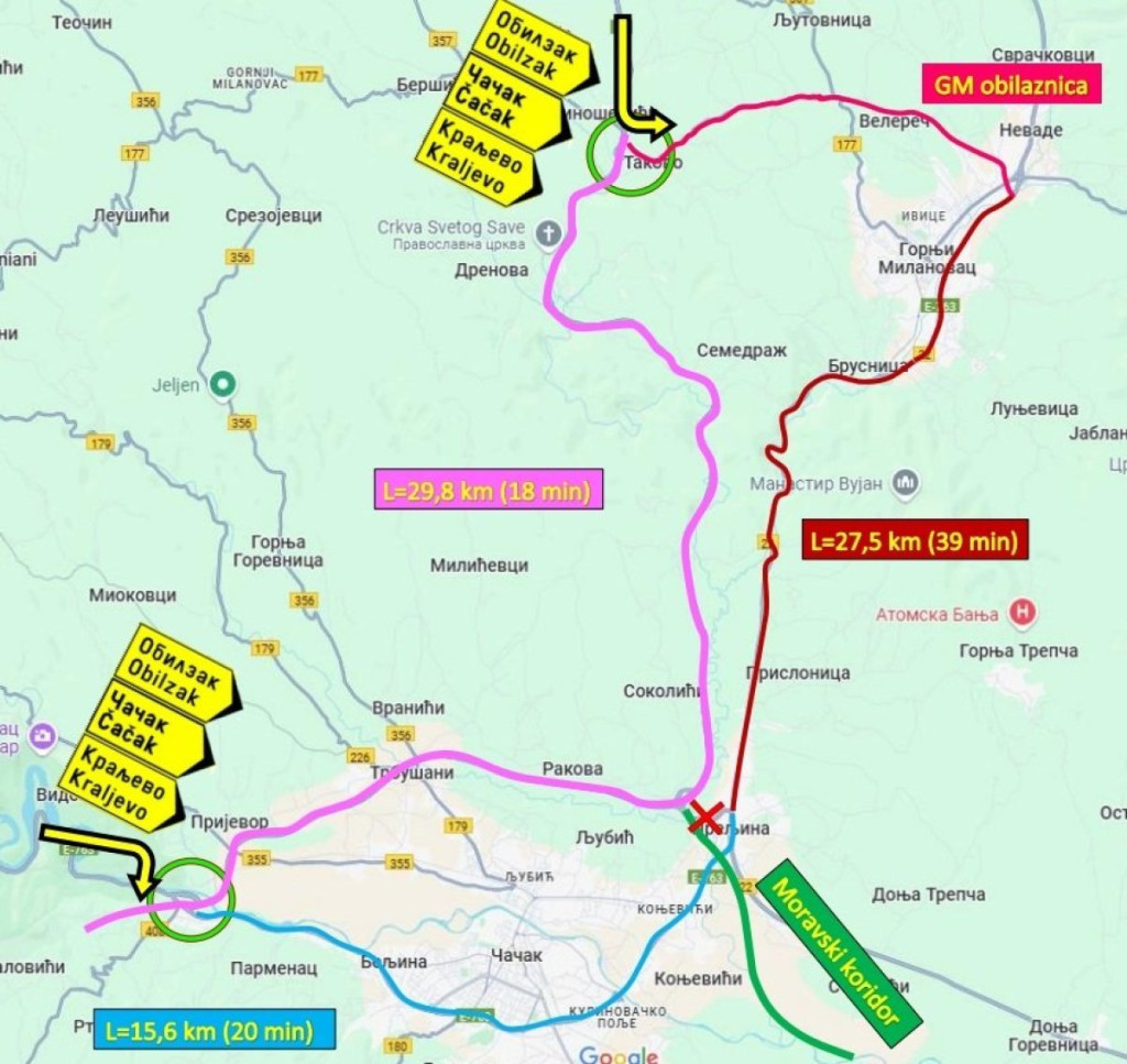 Tokom zatvaranja denivelisane raskrsnice "Preljina“ saobraćaj će se, ka odredištima Čačak i Kraljevo, odvijati na sledeći način: