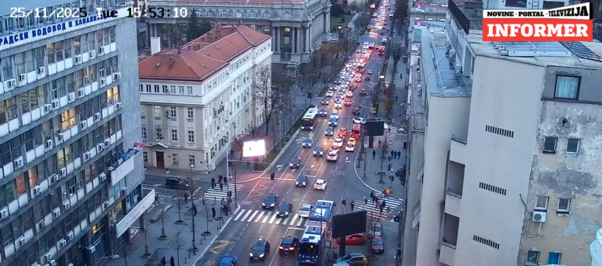 Saobraćaj je izrazito usporen, a u pojedinim delovima grada vozila se kreću sporije ili čak stoje u mestu.