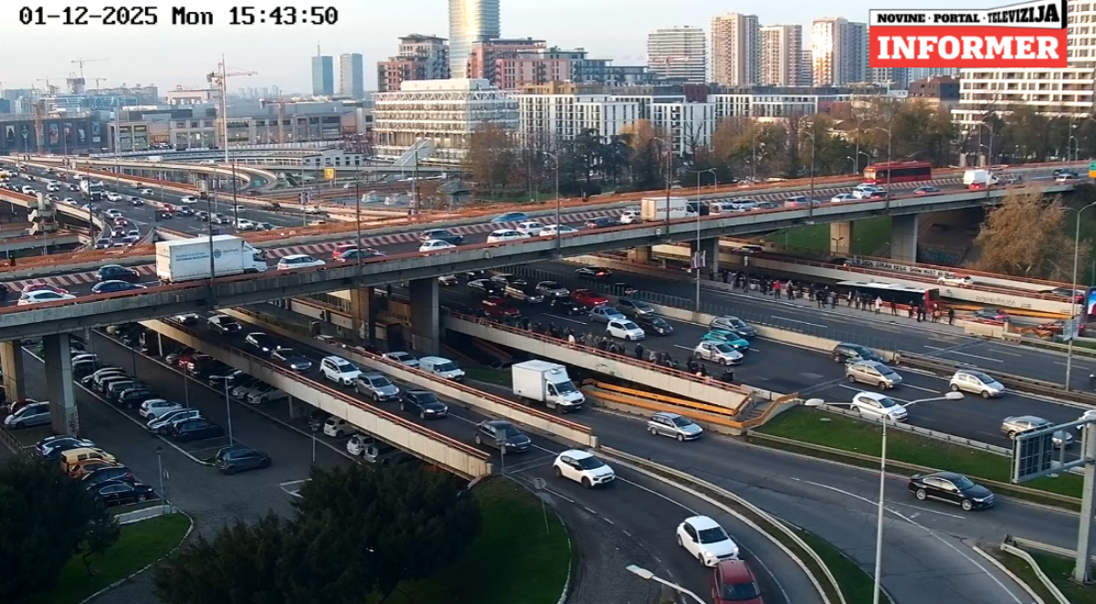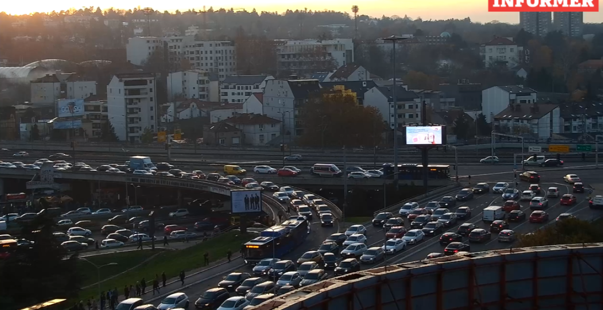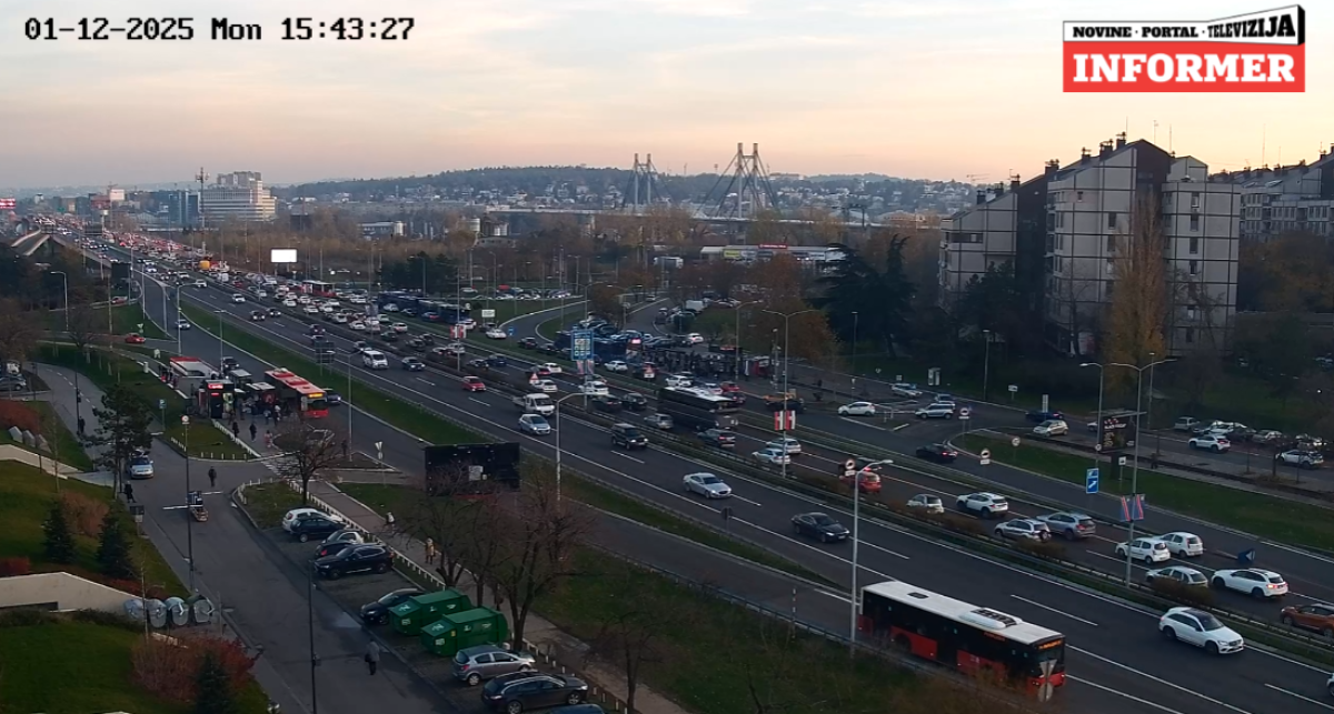 Kako se vidi na snimcima sa gradskih kamera, automobili se sporo kreću na najfrekventnijim saobraćajnim pravcima. Na moto-putu je zakrčenje sve od skoro Zmaja pa do Dušanovca, a Pančevački most je večito u crvenom ka gradu. Sve se crveni i na Autokomandi i svim prilazima tom kružnom toku.