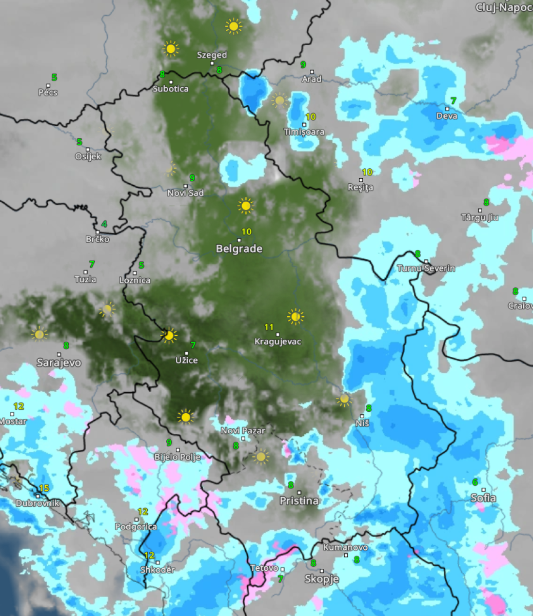 U petak padavine će zahvatiti gotovo svaki kraj naše zemlje, a najkritičnije biće u centralnom delu Srbije.