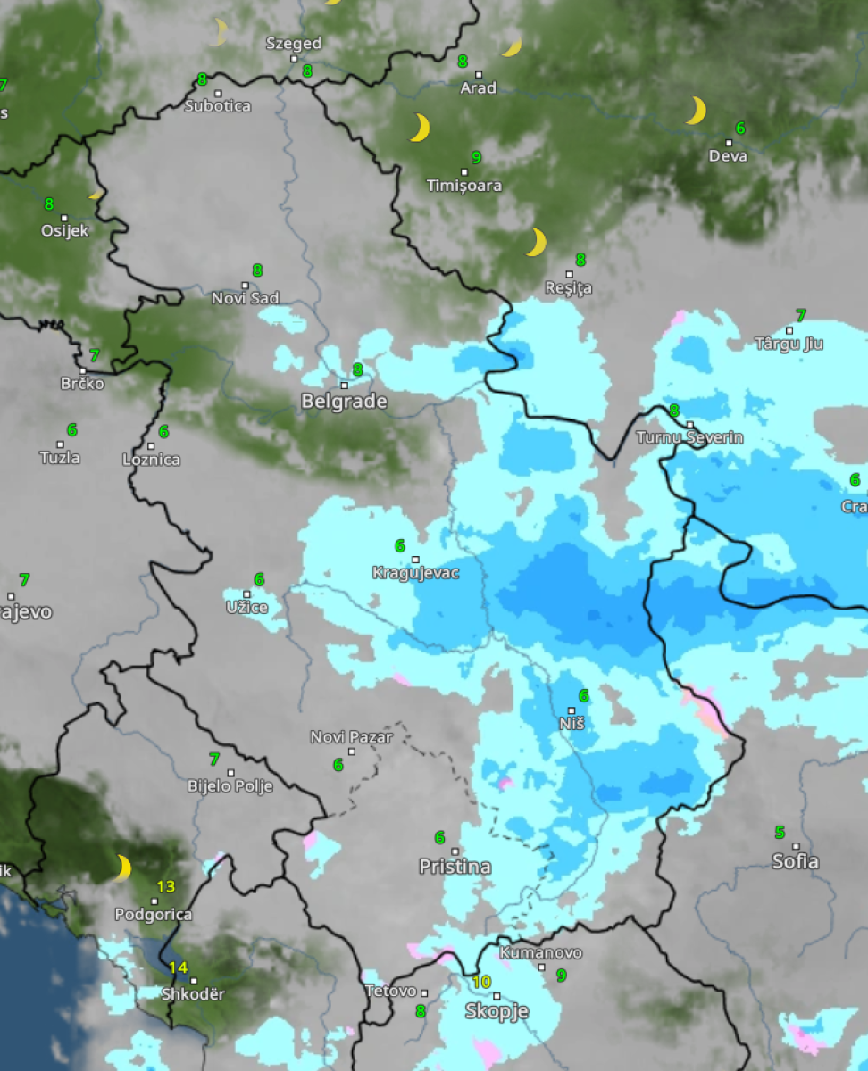 Prema najnovijim prognozama, jak ciklon čiji se centar trenutno nalazi iznad Grčke i dalje utiče na vreme u regionu. Zbog njegovog delovanja u Srbiji preovlađuje oblačno vreme, a mestimično se očekuju i padavine.