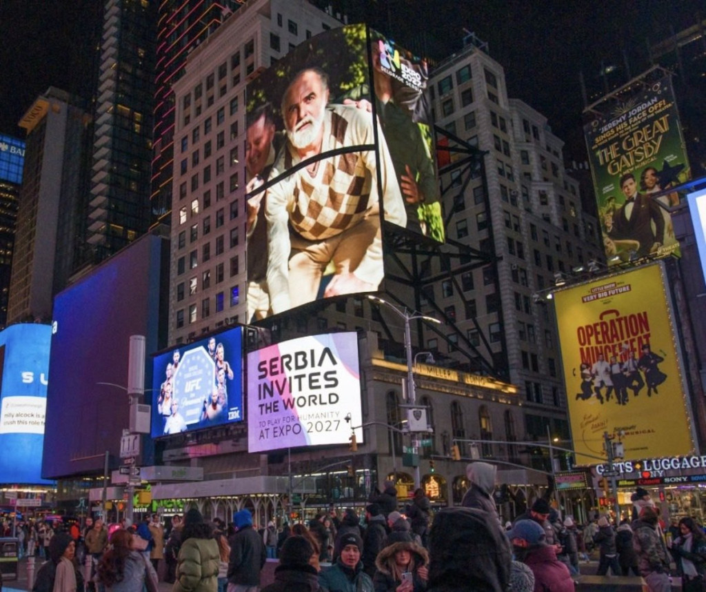 Bilbord "Ekspo Srbija 2027" osvanuo je na jednom od najprepoznatljivijih LED ekrana na Tajms Skveru, privlačeći pažnju hiljada prolaznika koji svakodnevno prolaze kroz srce Menhetna.