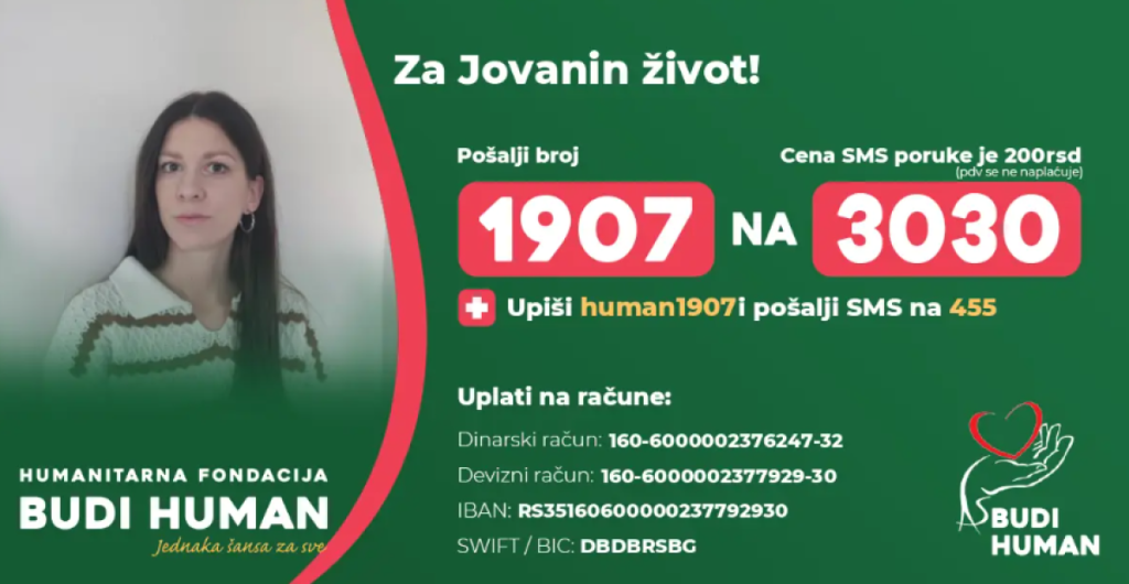 Potrebno je da u toku januara 2026. godine Jovana nastavi lečenje u Moskvi gde bi primala personalizovanu terapiju kao i imunoterapije, dakle lek postoji.