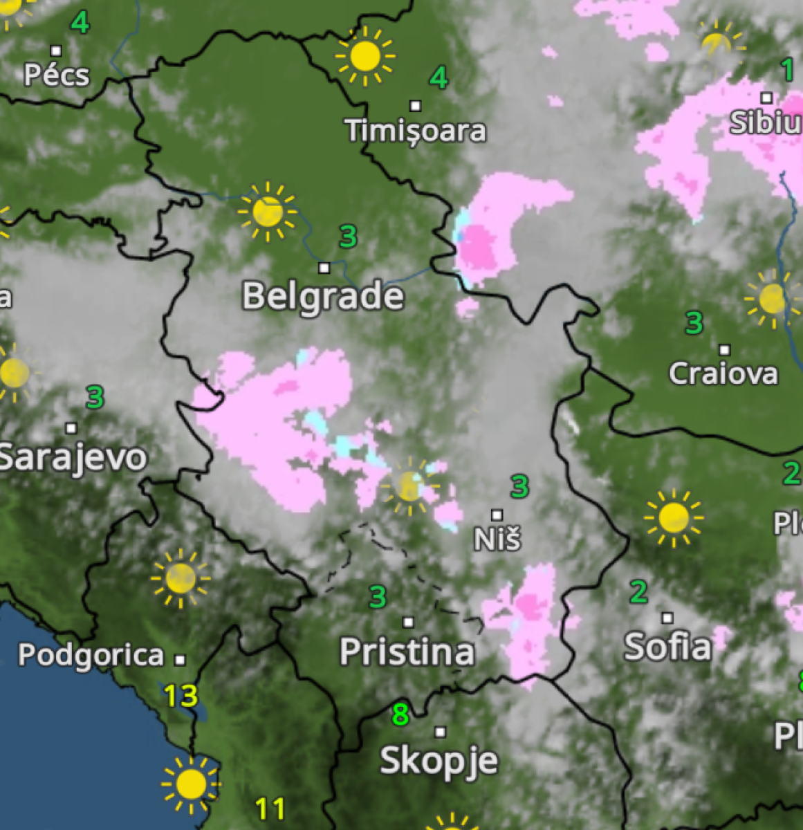 Iako će se danas nakon oblačnog jutra delimično razvedriti, ovo je samo kratkotrajni predah pred nove padavine. Već u danima koji su pred nama, pa sve do 3. januara 2026. godine, očekuje se promenljivo oblačno vreme koje će povremeno donositi lokalne pljuskove snega.