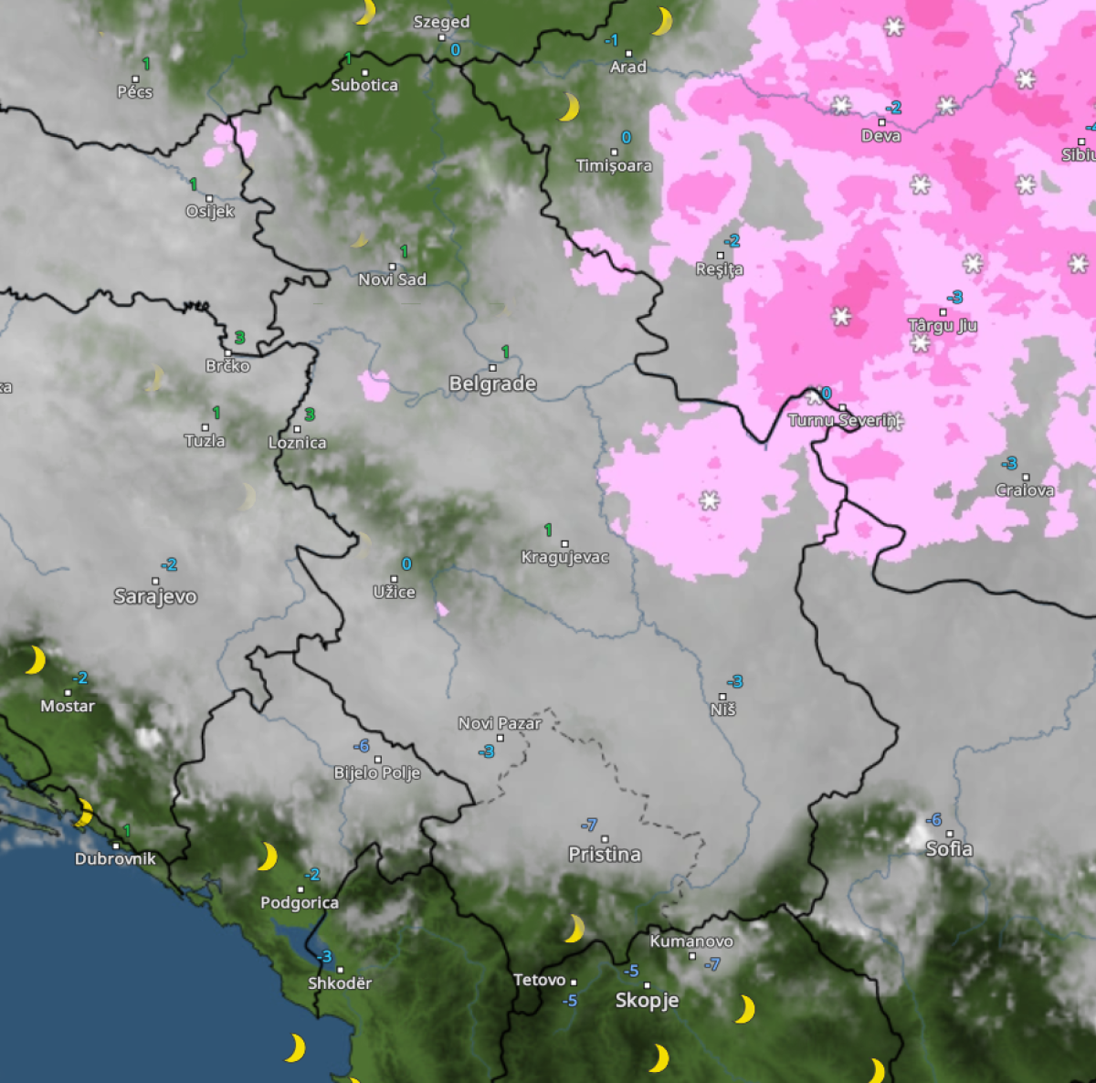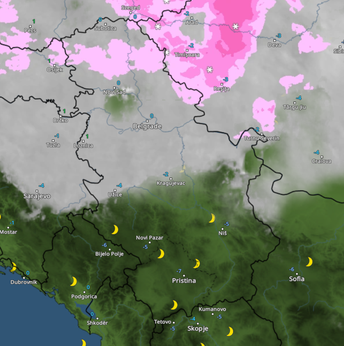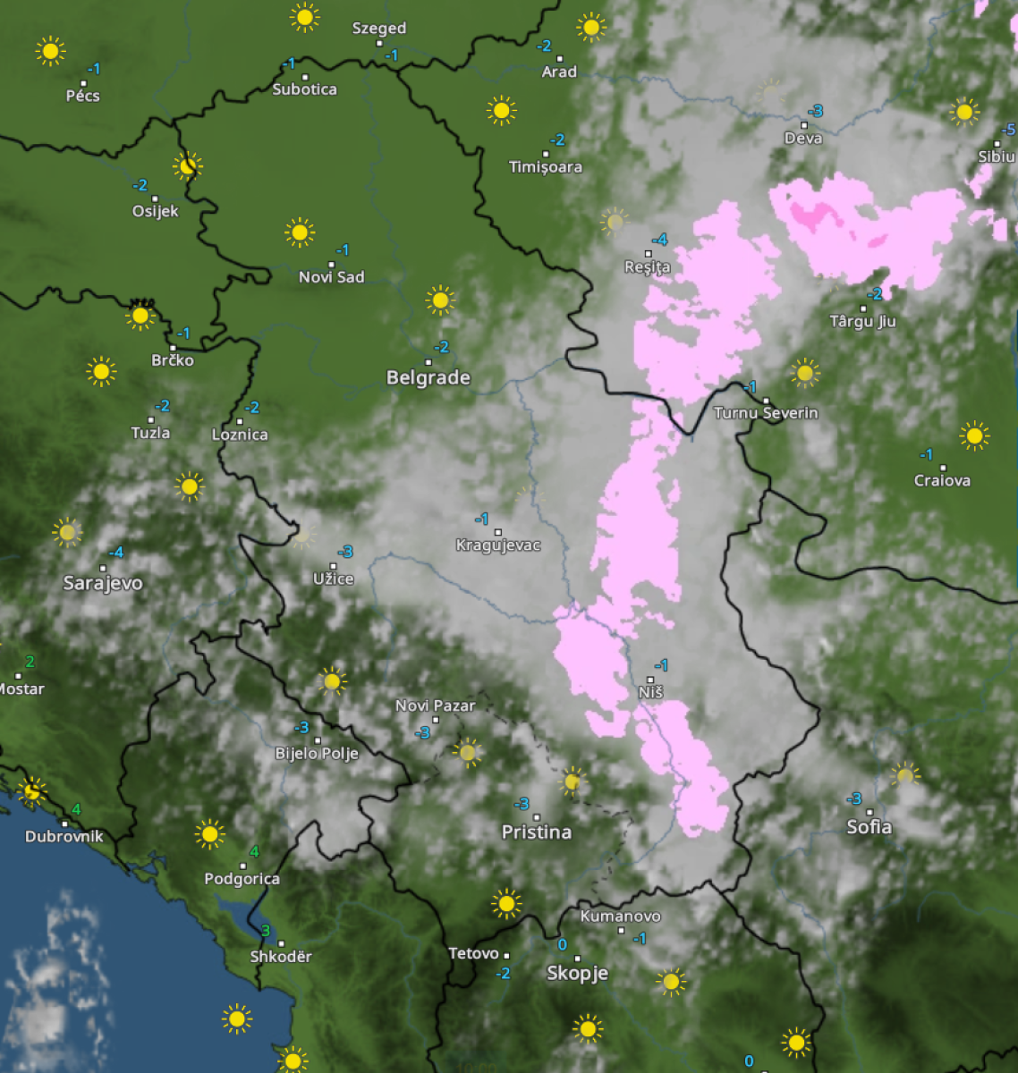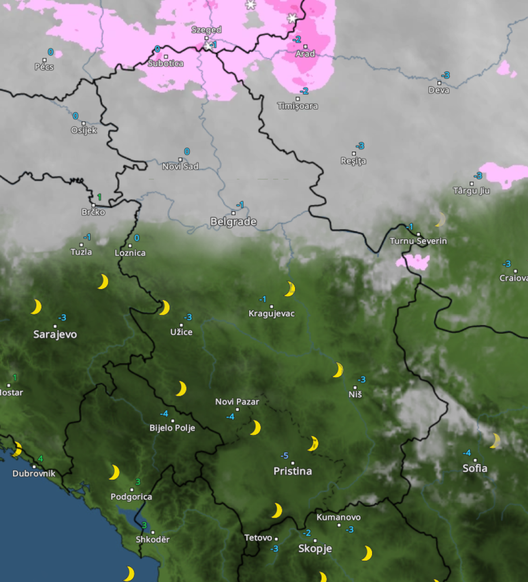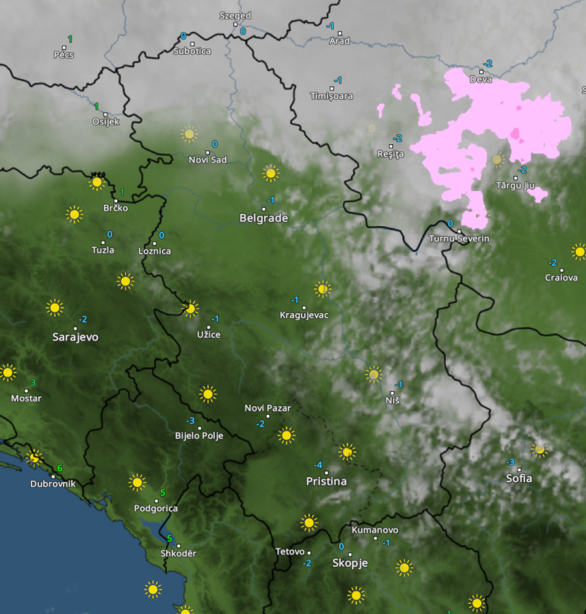 Pad temperature očekuje se od ranog jutra, te će već u prepodnevnim časovima minus biti na teritoriji čitave Srbije. U Beogradu se očekuje -2, u Novom Sadu -1, u Užicu -4, u Vranju i Nišu -5, dok u Prištini će biti -7 stepeni.