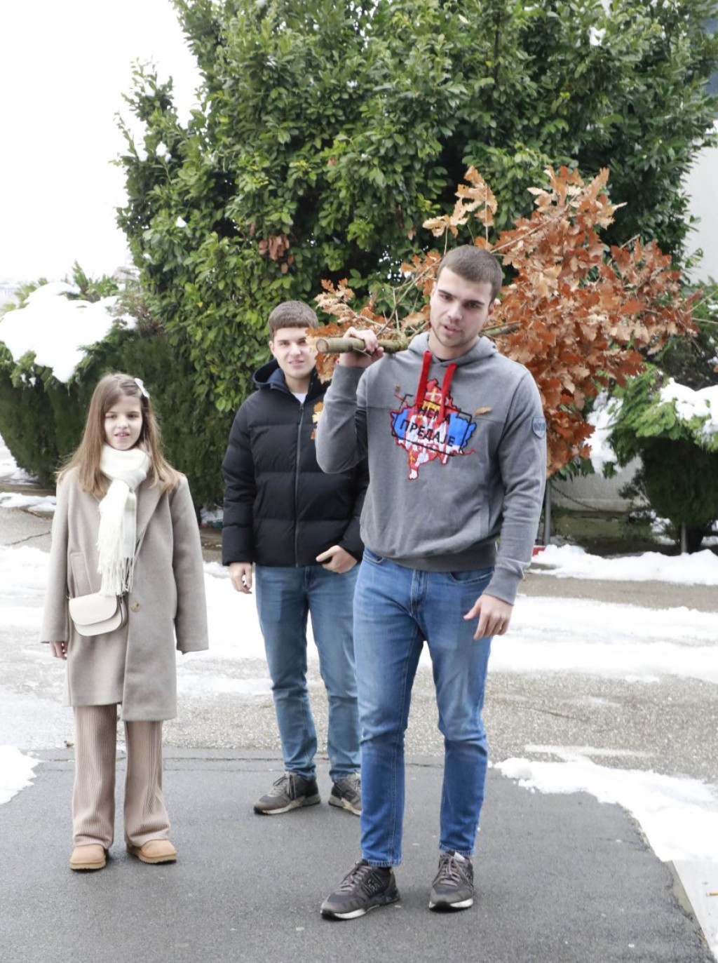Uz pozdrav "Srećan Badnji dan" sveto drvo je stavljeno pored novogodišnje jelke.