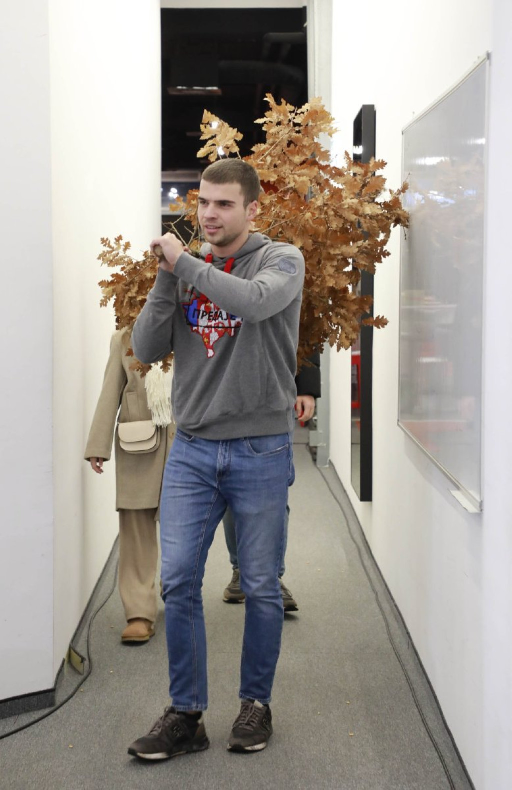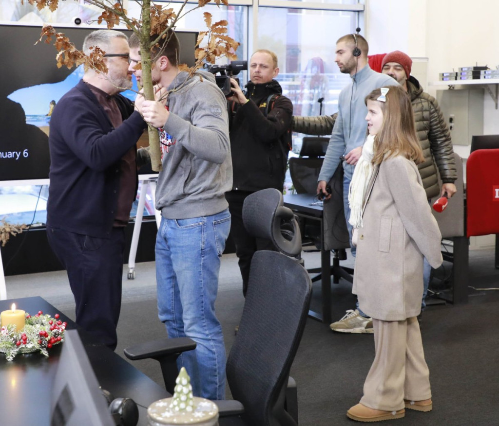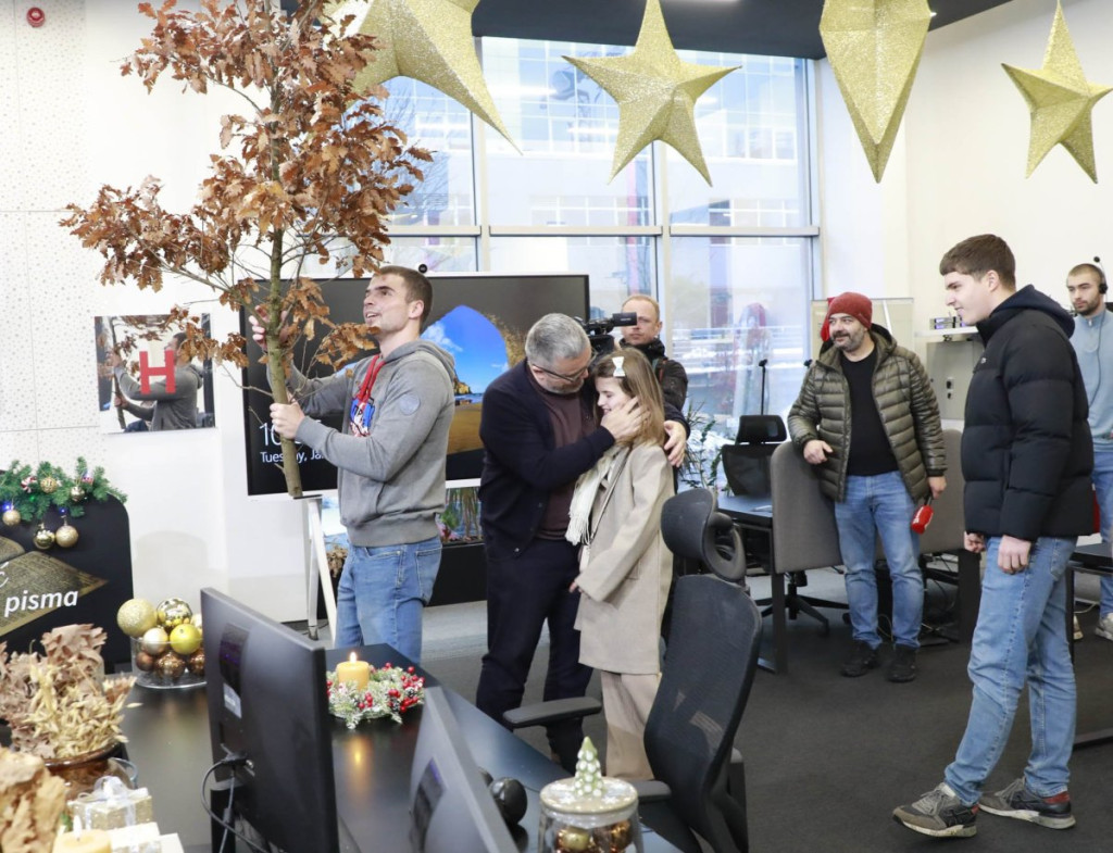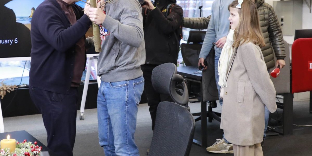Badnjak su unela deca našeg glavnog urednika - Vukašin, Mihajlo i Marija, a u Kolegijumu ih je dočekao Dragan J. Vučićević, ali i ostale kolege.