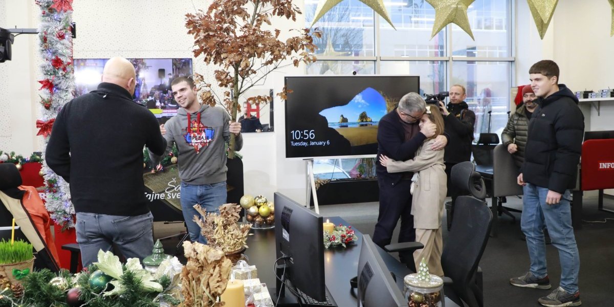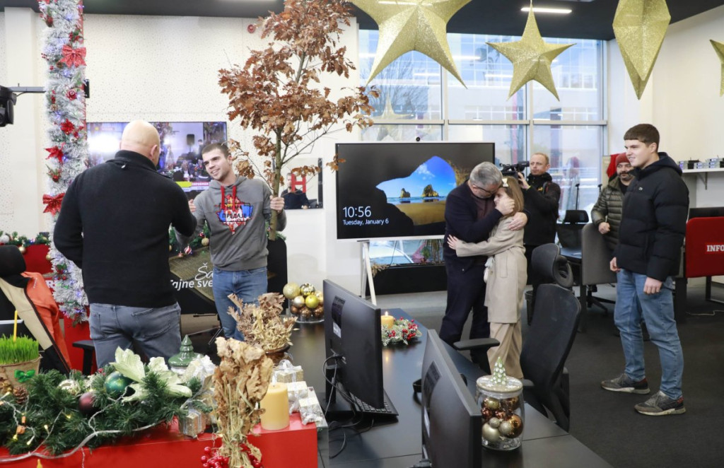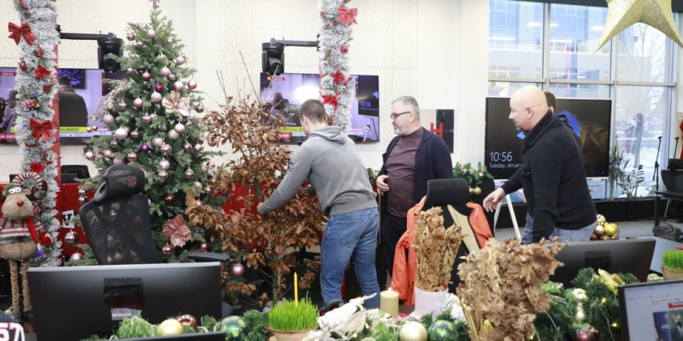 Nakon toga, su se, po srpski, svi prustni pozdravili tri puta, a zatim je glavni urednik Dragan J. Vučićević nazdravio za Badnji dan i Božić i "zalio" badnjak uz domaću rakiju.