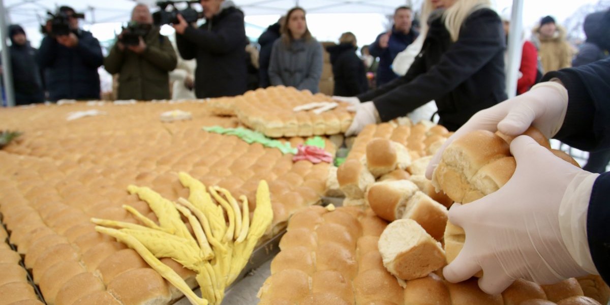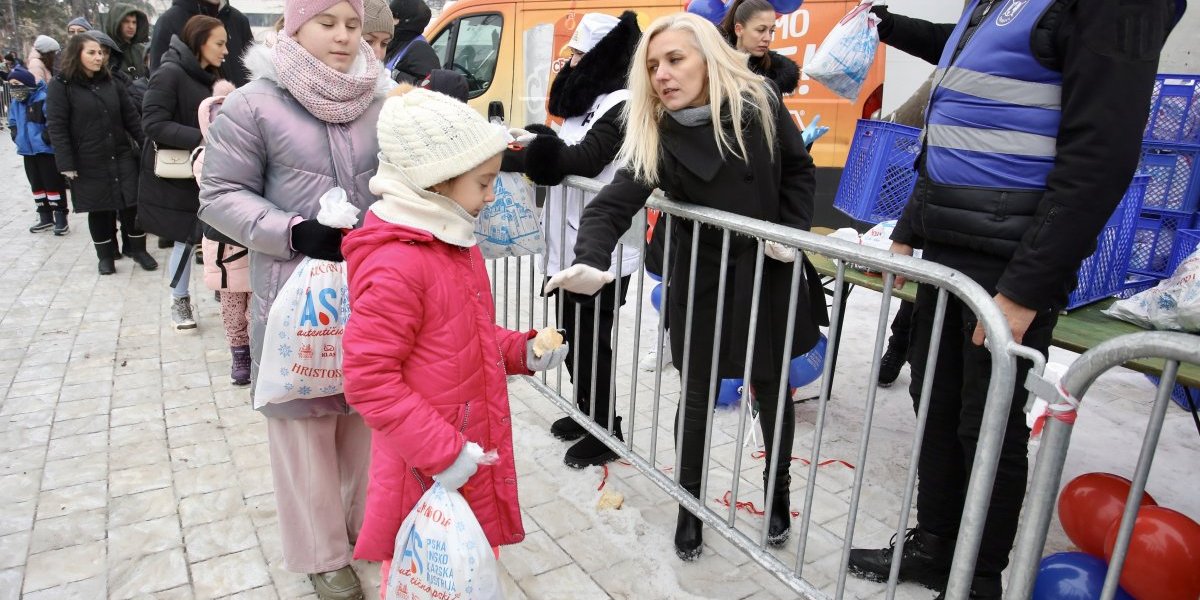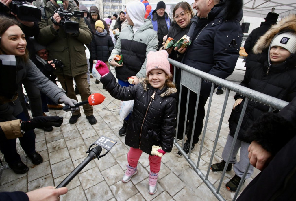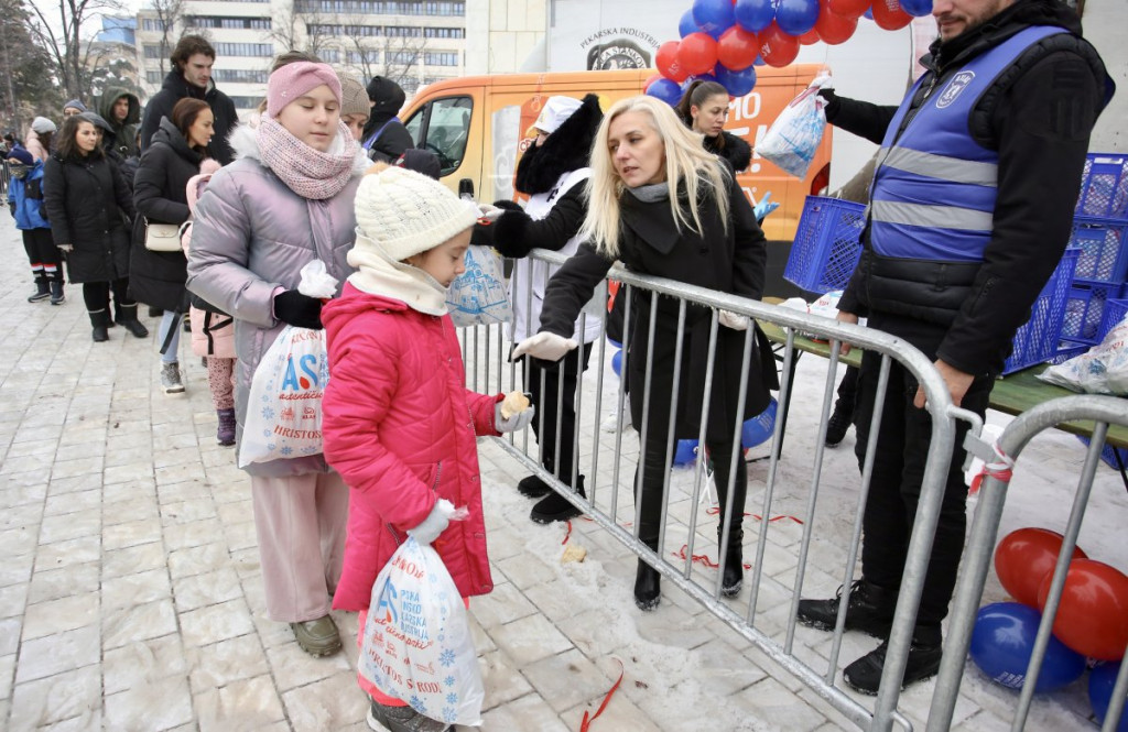 Prisustnima ispred Hrama Svetog Save Unija pekara Srbije podelila je i 4.000 krstića i više od 2.000 hiljade paketića, kao i druge poklone.