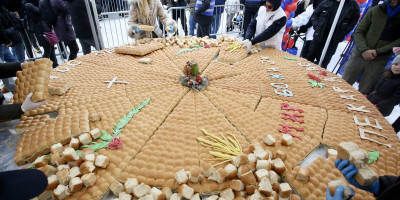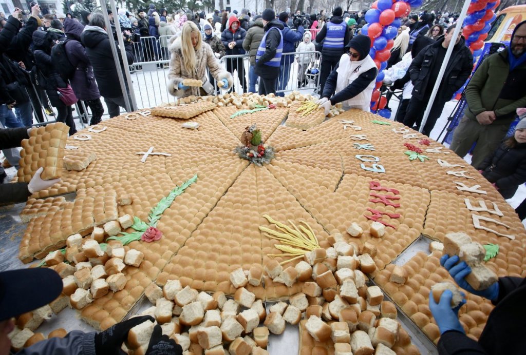 Na platou ispred Hrama Svetog Save na Vračaru u Beogradu tradicionalno je organizovano lomljenje božićne česnice koja je i ove godine imala 33 zlatna dukata u čast godina Isusa Hrista.
