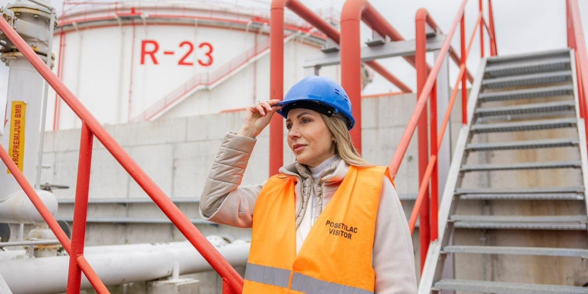 Rezervoare za naftne derivate u Smederevu zajedno sa ministarkom Đedović Handanović obišla je gradonačelnica Smedereva Jasmina Vojinović.