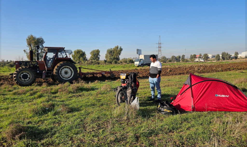 Odmah na granici menjam poslednjih 20.000 iračkih dinara kod jednog vozača autobusa za 500 lira. Pada obavezno slikanje ispred table "Türkiye", a zatim nastavak vožnje kroz nova, nepregledna prostranstva sa planinama koje se bele u daljini. Dan završavam pored jednog ograđenog imanja. Postavljam šator, a za divno čudo, moja iračka kartica i dalje prkosi granicama i hvata signal. Do Džizrea imam još 40 kilometara. Večeras spavam miran, daleko od traktora i carinskih papira.