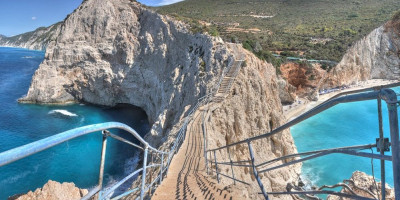 Čuvene stepenice na plaži Ergemni na Lefkadi oštećene su nakon snažnog nevremena, a obrušena zemlja i kamenje uništili su deo prilaza koji vodi do ove plaže.