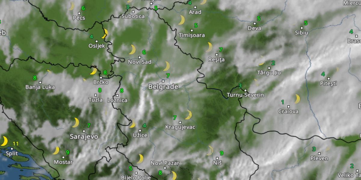 Sutra će biti promenljivo oblačno sa sunčanim intervalima, a u brdsko-planinskim predelima jugozapadne Srbije posle podne je moguća kratkotrajna kiša.