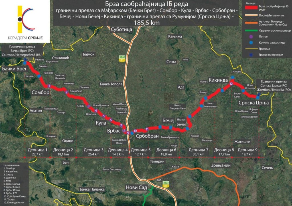 Kako su najavili nadležni, kada cela saobraćajnica bude završena, putovanje između graničnih prelaza sa Mađarskom i Rumunijom biće smanjeno, umesto dosadašnja tri sata, putovaće se manje od dva sata.