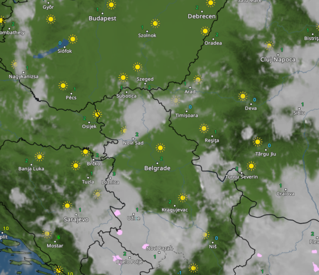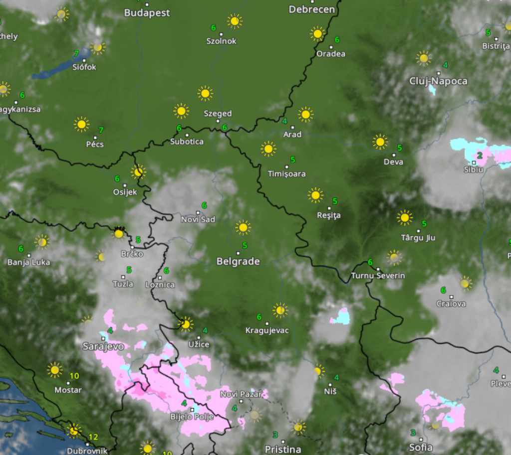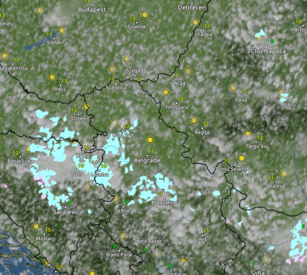 Slaba kratkotrajna kiša moguća je samo ponegde u brdsko-planinskim predelima, dok u višim planinskim zonama može provejavati i sneg.