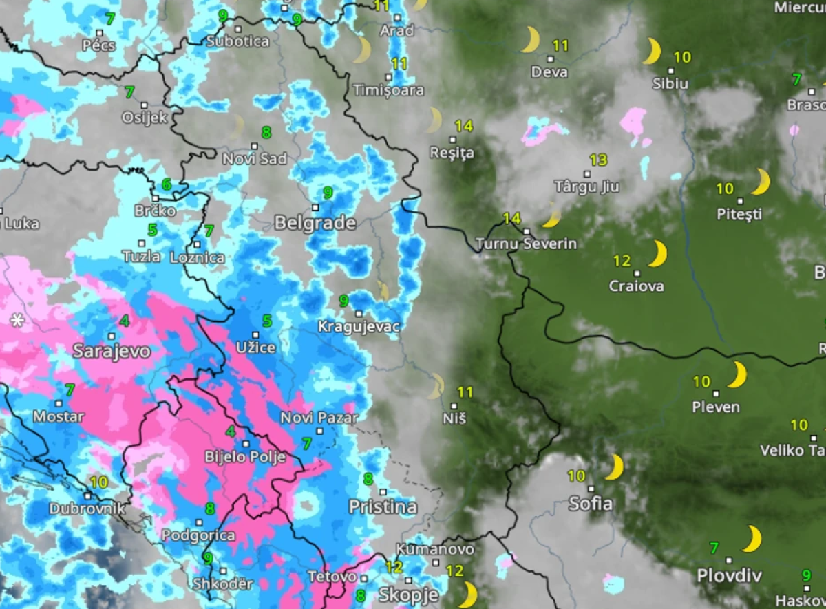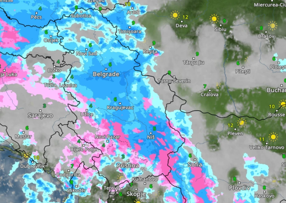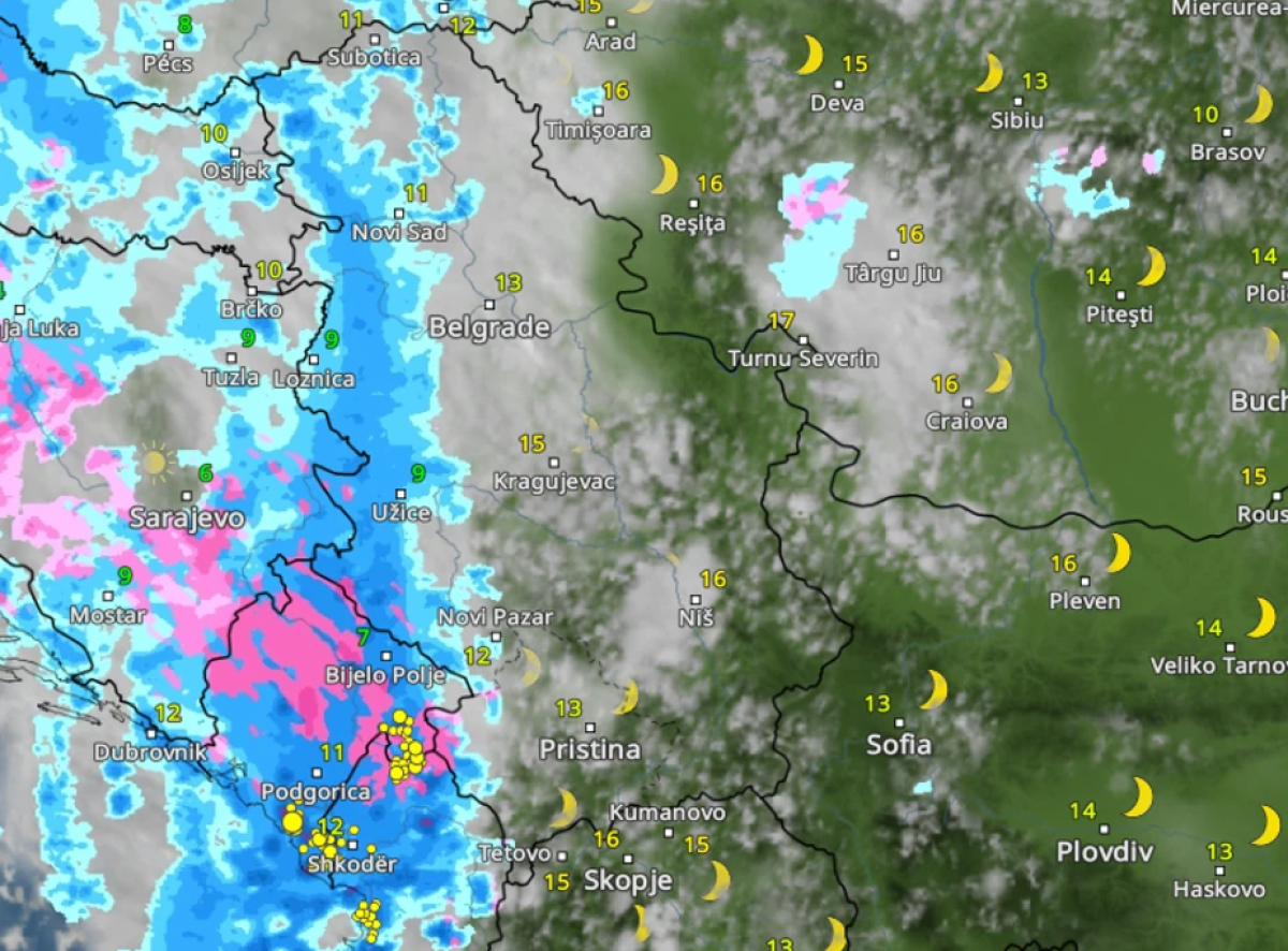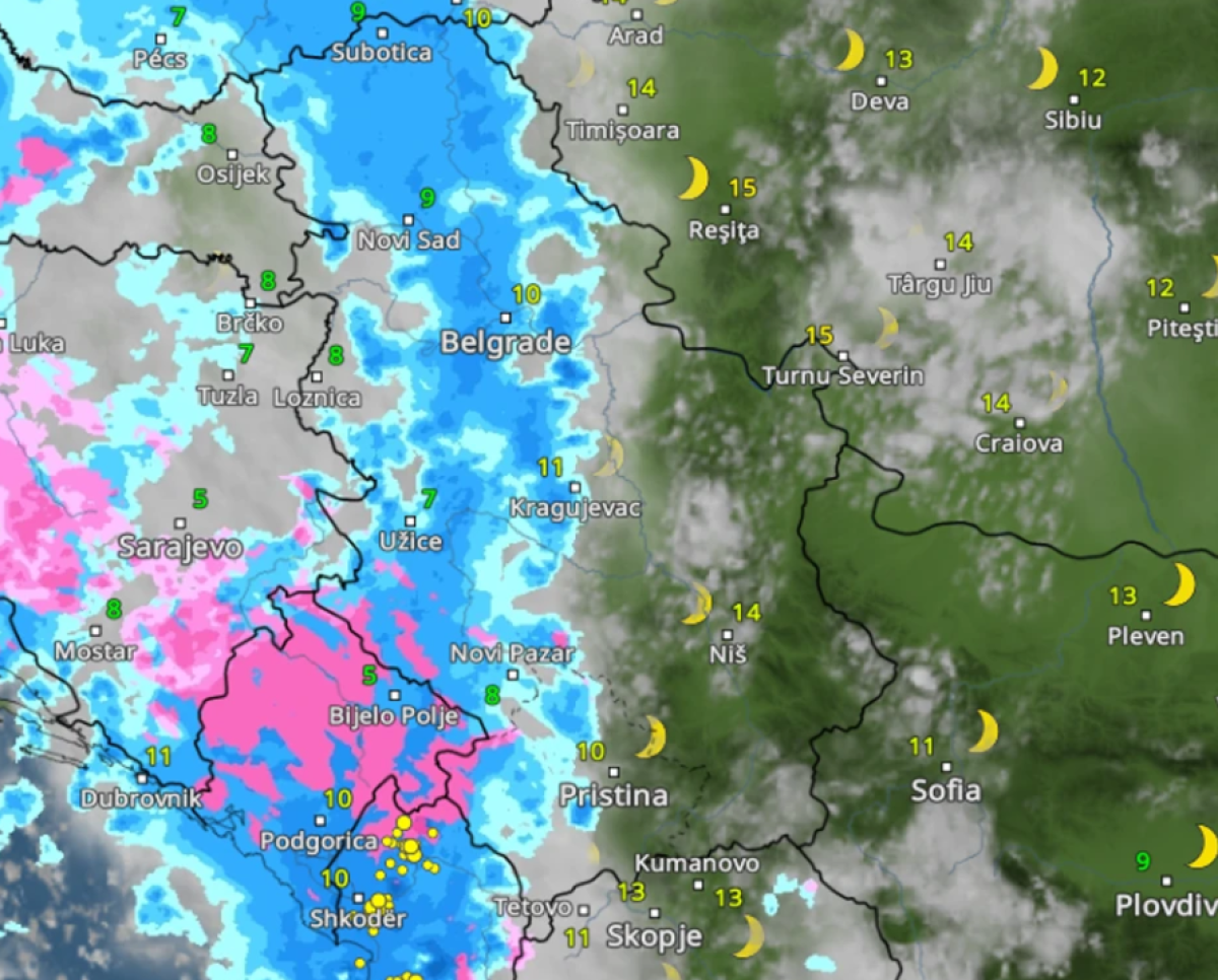 U višim delovima zemlje očekuje se nagli pad temperature, a tačno u 22:00 očekuje se sneg na planinama jugozapadne Srbije, gde će biti najintenzivniji.