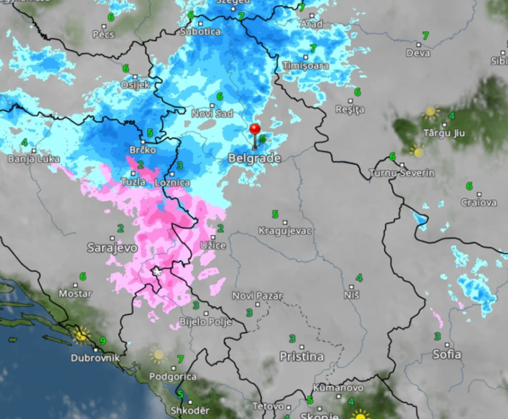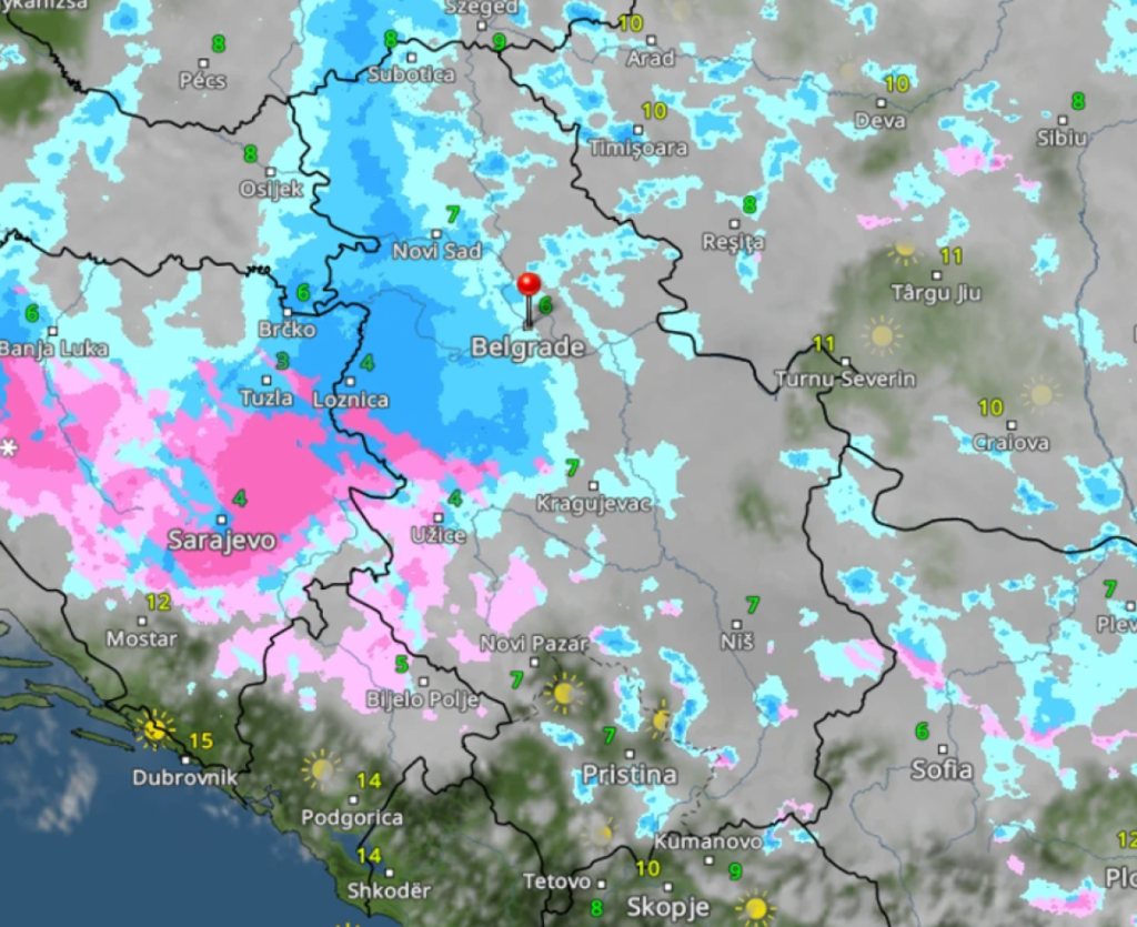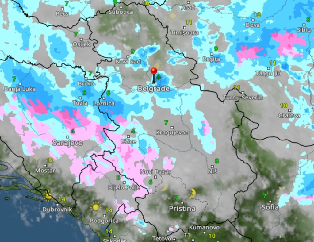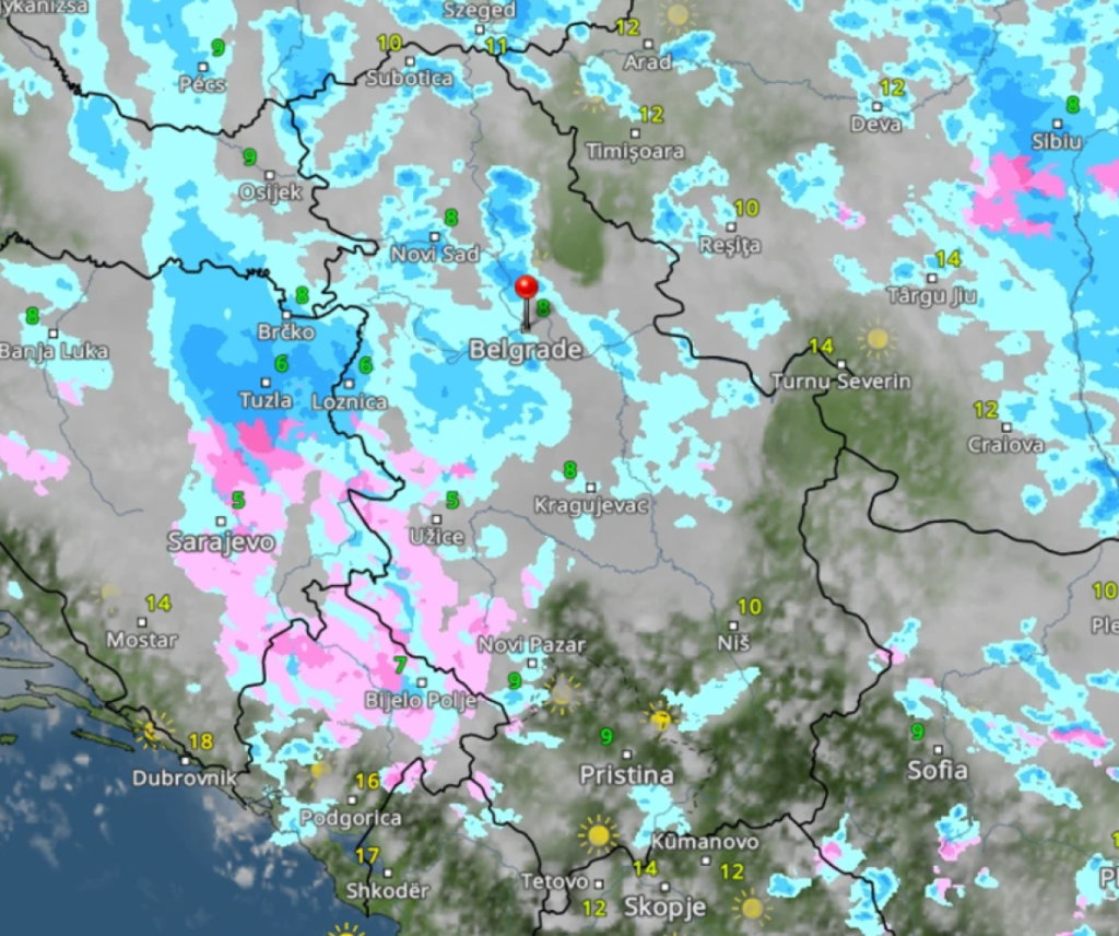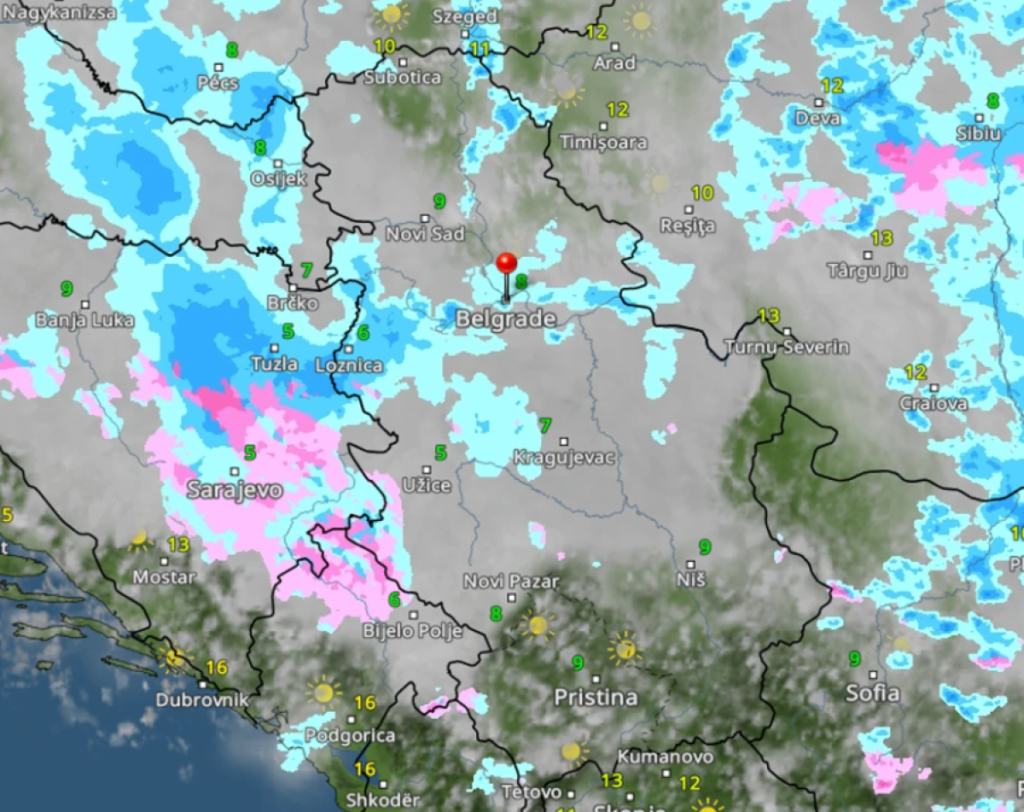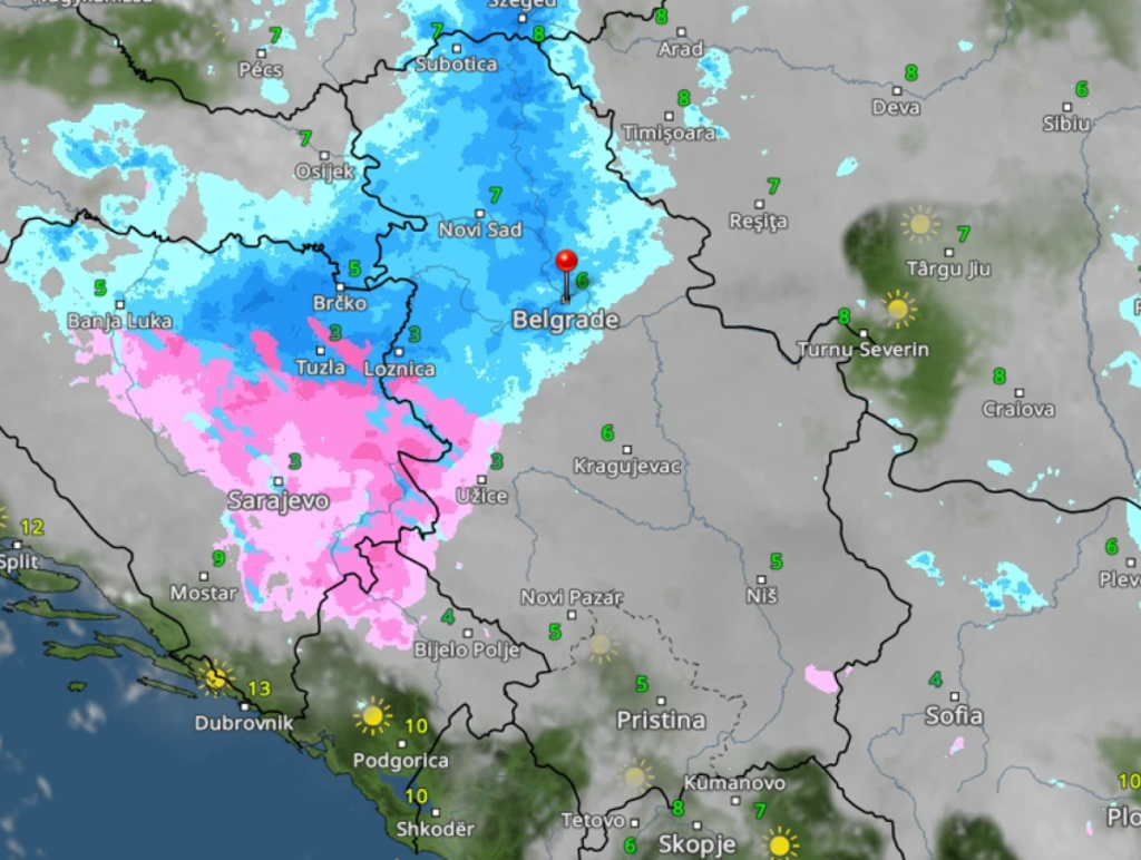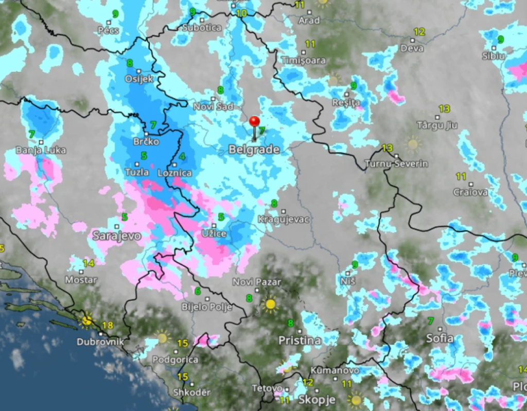 Snažan oblačni sistem iz Hrvatske i Bosne i Hercegovine stiže u Srbiju. Sa sobom nosi zahlađenje, kiše i pljuskove širom zemlje, a ponegde i grmljavinu. Na planinama će padati puno snega.