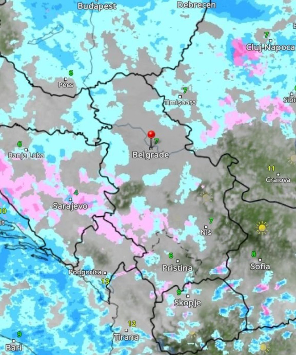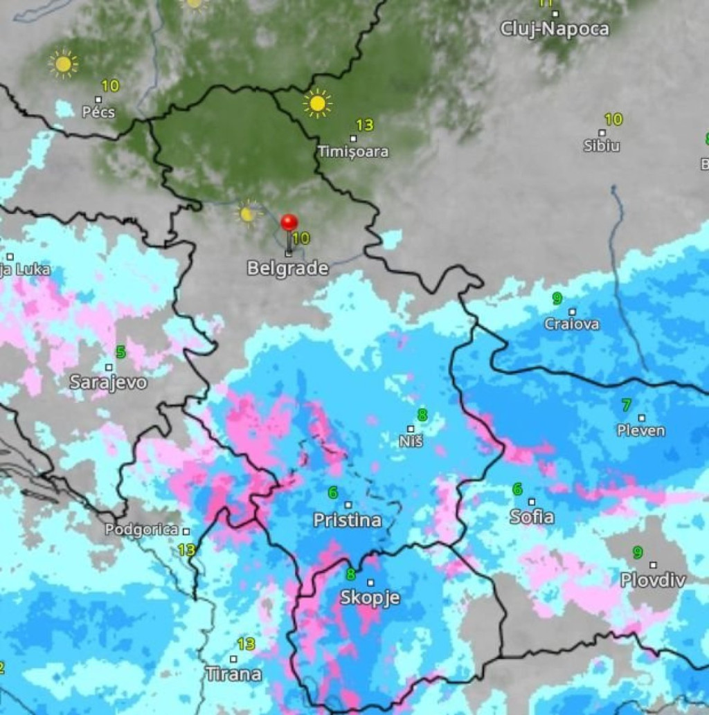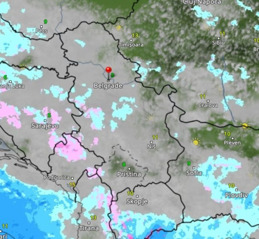 Danas će biti oblačno i hladno vreme, mestimično sa kišom. Na planinama će padati slab sneg. Temperature će se kretati od 4 do 13 stepeni Celzijusove skale.