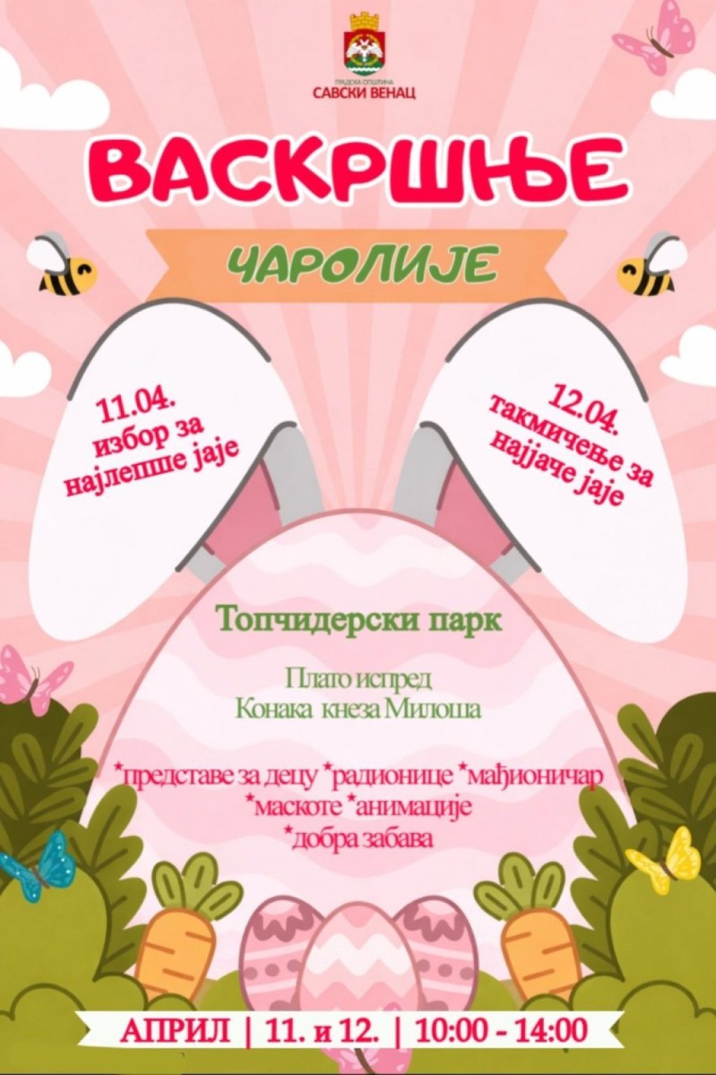 Poseban deo programa čine takmičenja za decu: u subotu, 11. aprila, biće izabrano najlepše oslikano vaskršnje jaje, dok će se u nedelju, na Vaskrs, birati najjače vaskršnje jaje. Pozivamo sve mališane da ponesu svoja vaskršnja jaja i učestvuju u ovim veselim nadmetanjima.