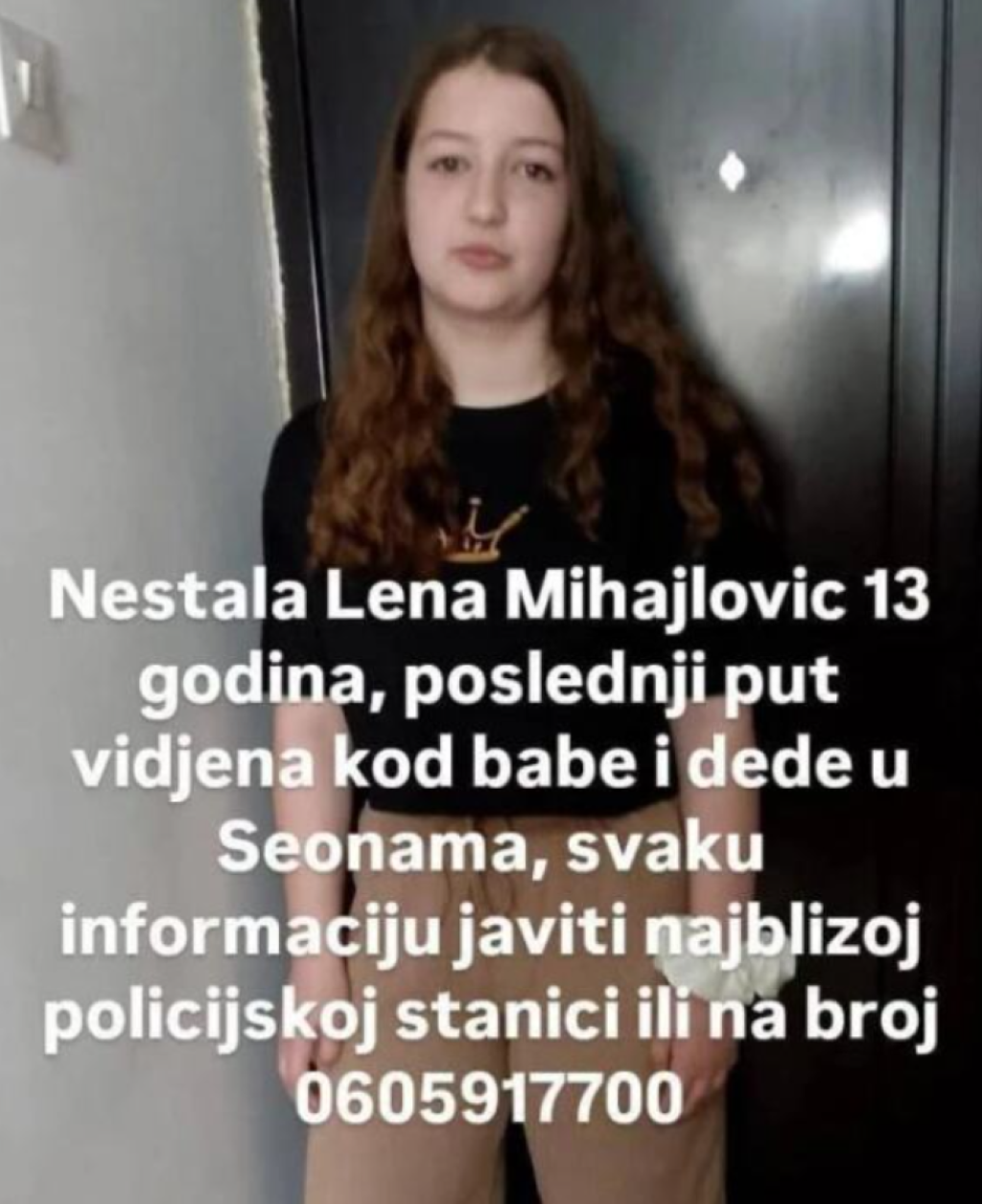 Naime, kako se deli u apelu, Lena je poslednji put viđena kod babe i dede u Seonama, selu kod Smedereva.